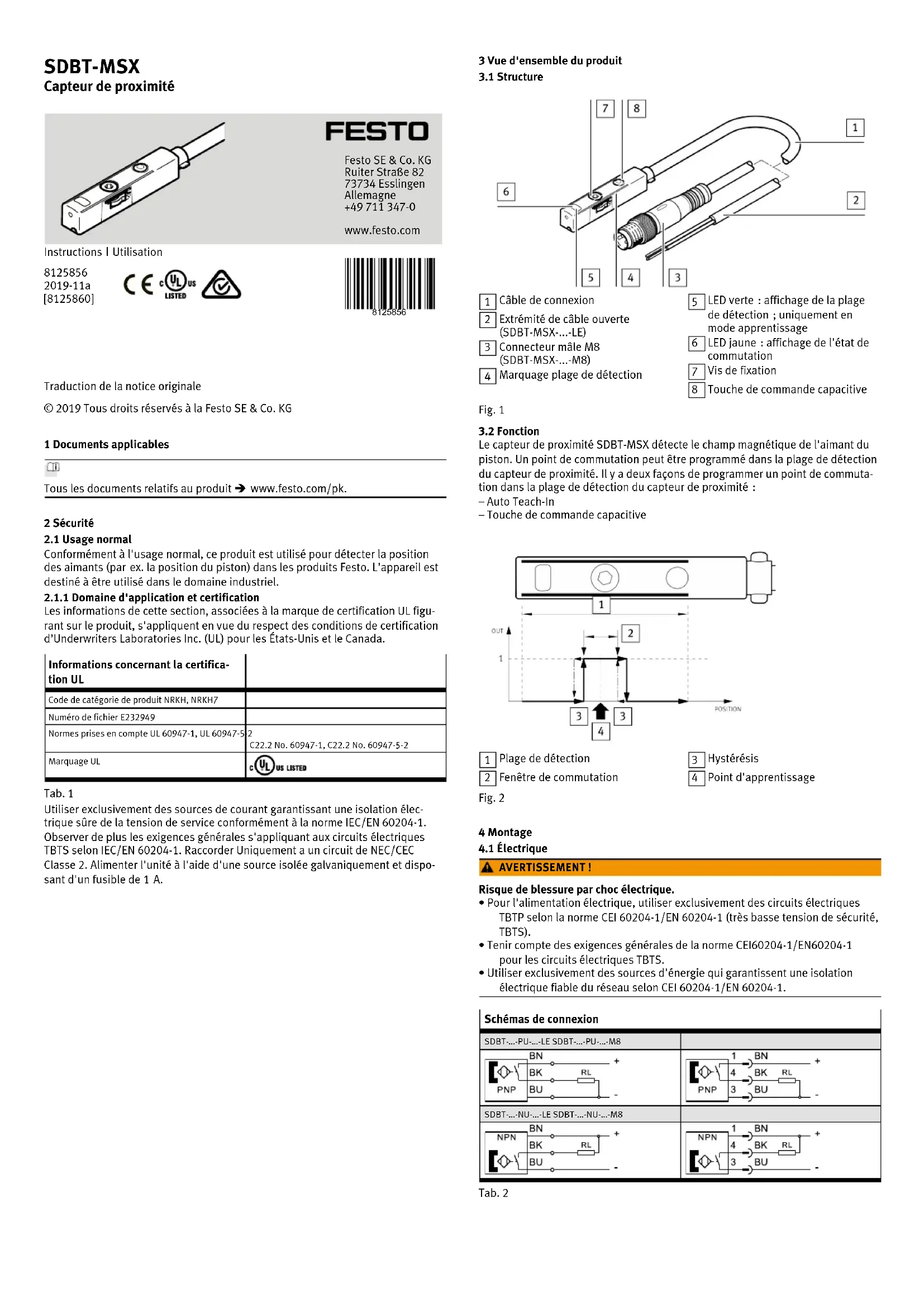 SDBTMSX1LPUE5NLE - Capteur Festo - Notice d'utilisation et mode d'emploi gratuit