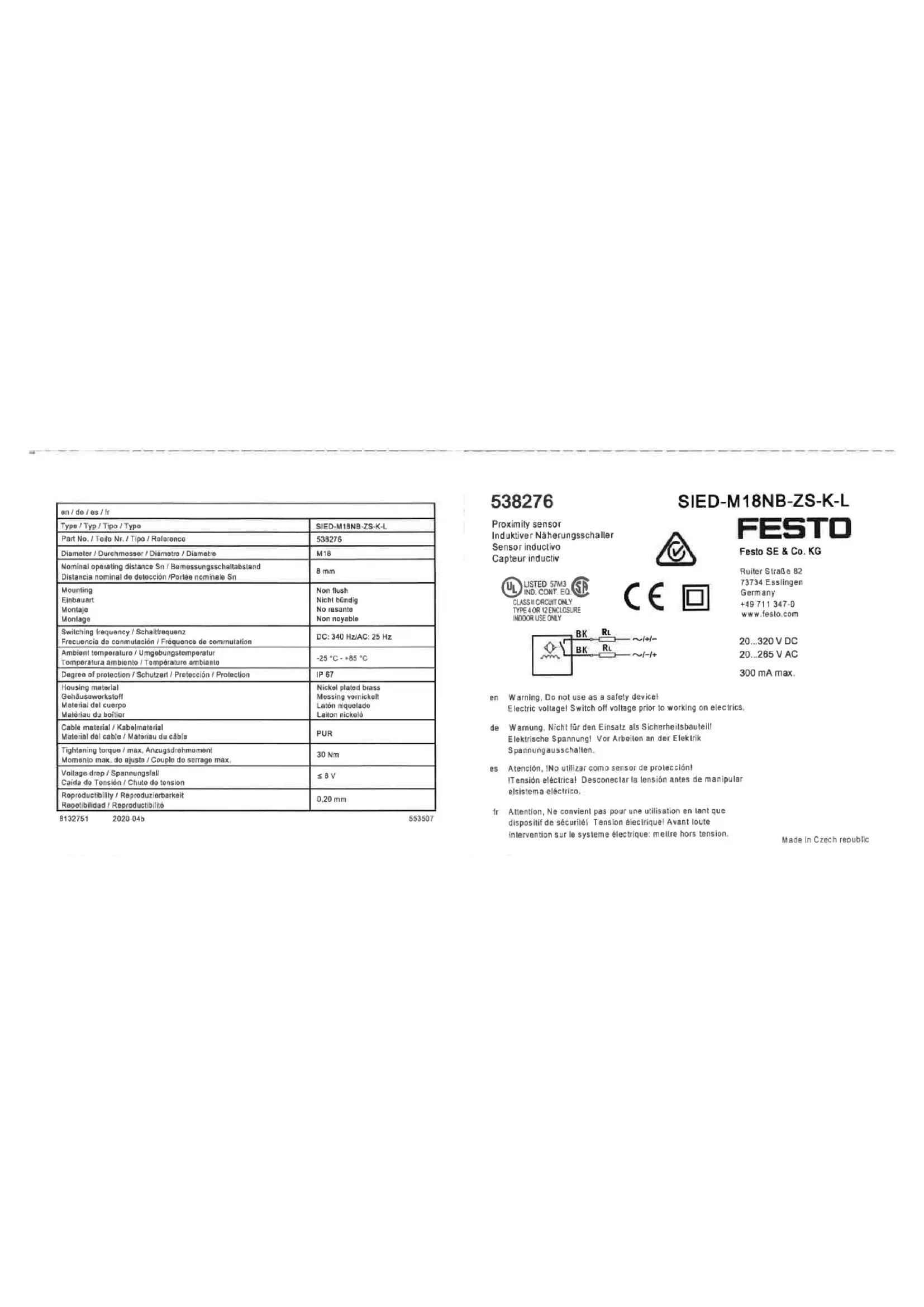 SIEDM18NBZSKL - Capteur Festo - Notice d'utilisation et mode d'emploi gratuit