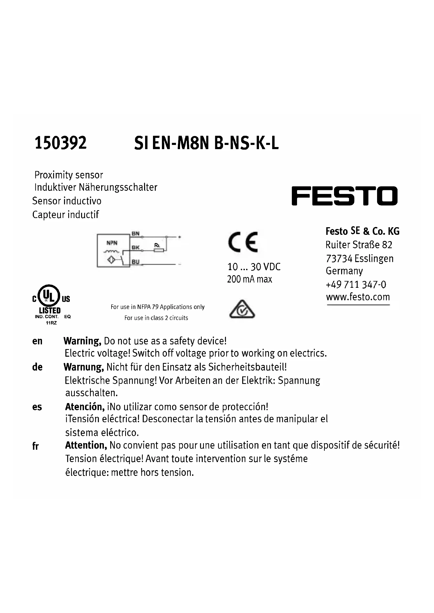 SIENM8NBNSKL - Capteur Festo - Notice d'utilisation et mode d'emploi gratuit