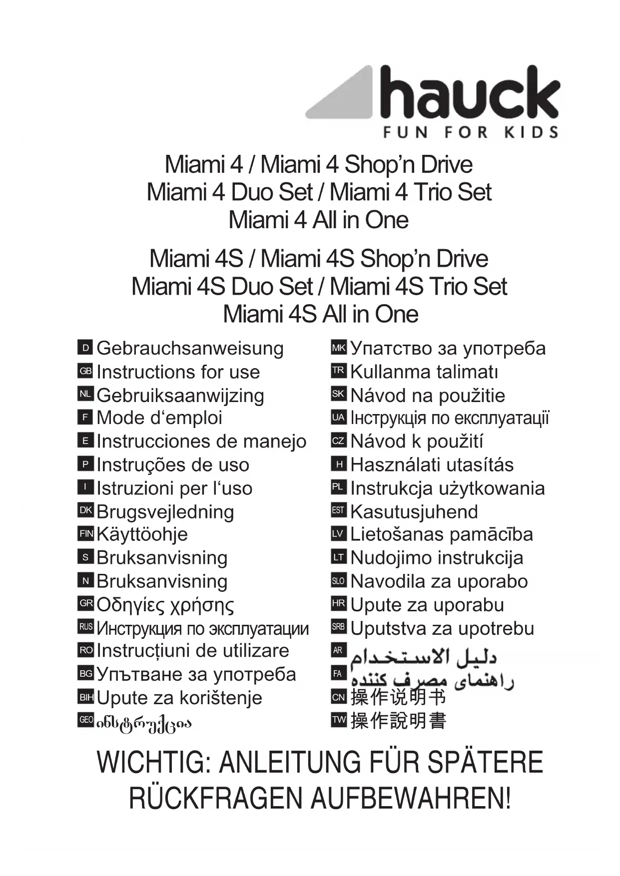Miami 3 - Poussette HAUCK - Notice d'utilisation et mode d'emploi gratuit