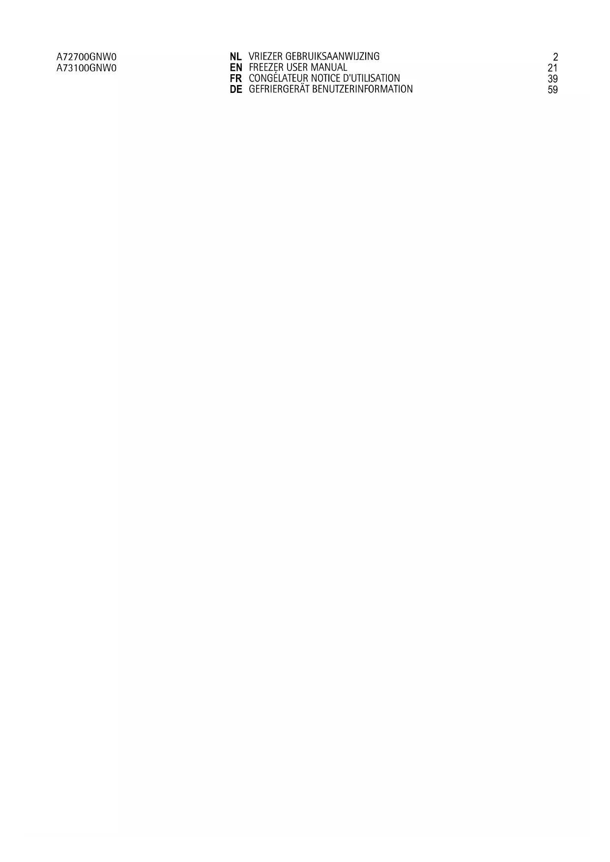 A72700GNW0 - Congélateur AEG - Notice d'utilisation et mode d'emploi gratuit