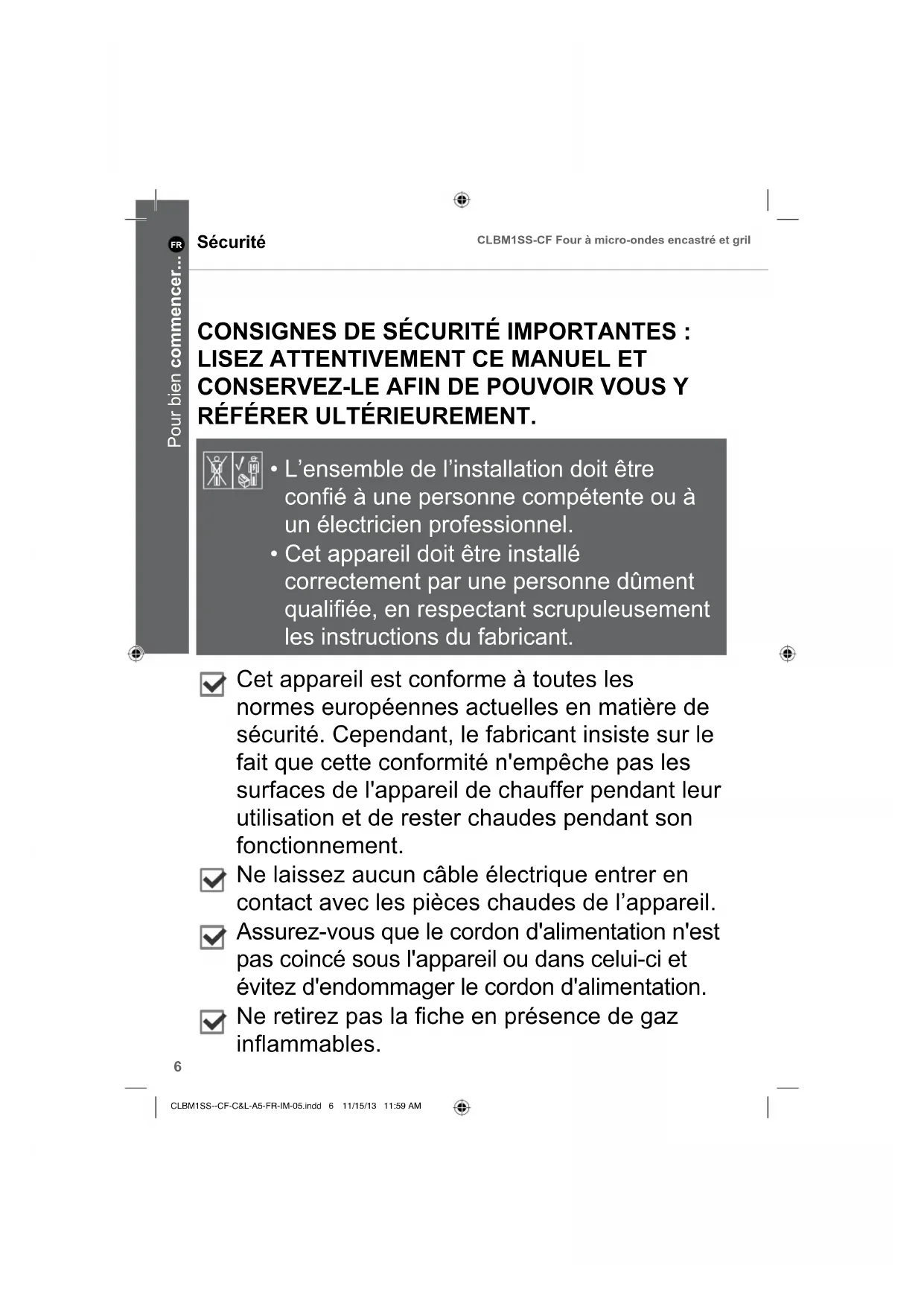 Ces instructions ont ete redigees pour voite sccurite. Veuillez les dire attentivement avant toute utilisation, puis conservez-les afin de pouvoir vous y referer ulterieurement.