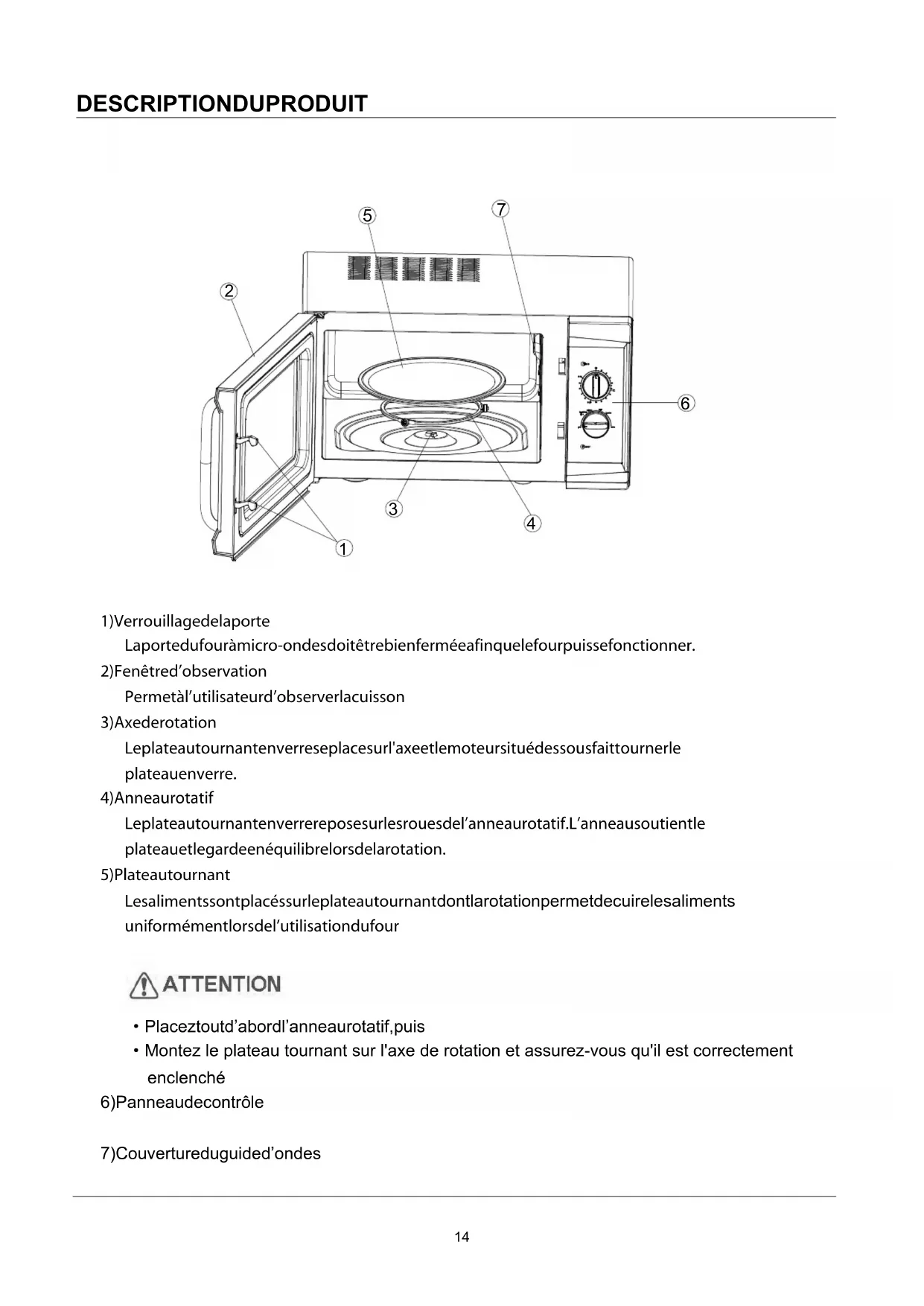 - Le four ne doit pas fonctionner sans le plateau de verre et son support rotatif.