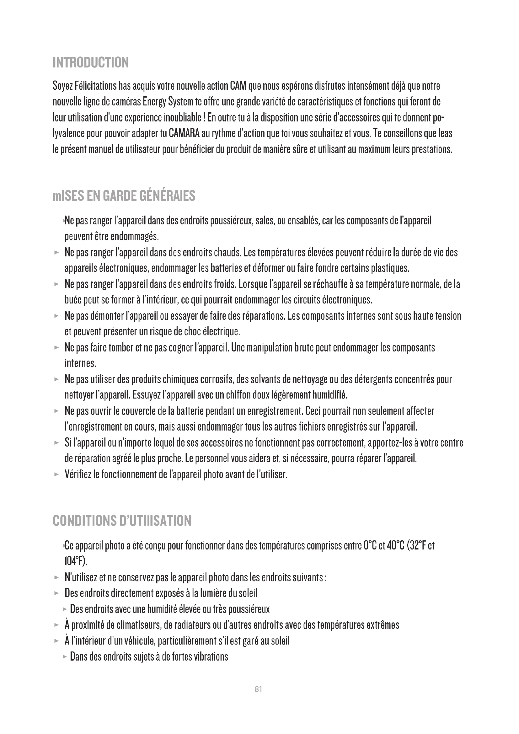 MODE D'EMPLOI Sport Cam Pro ENERGY SISTEM