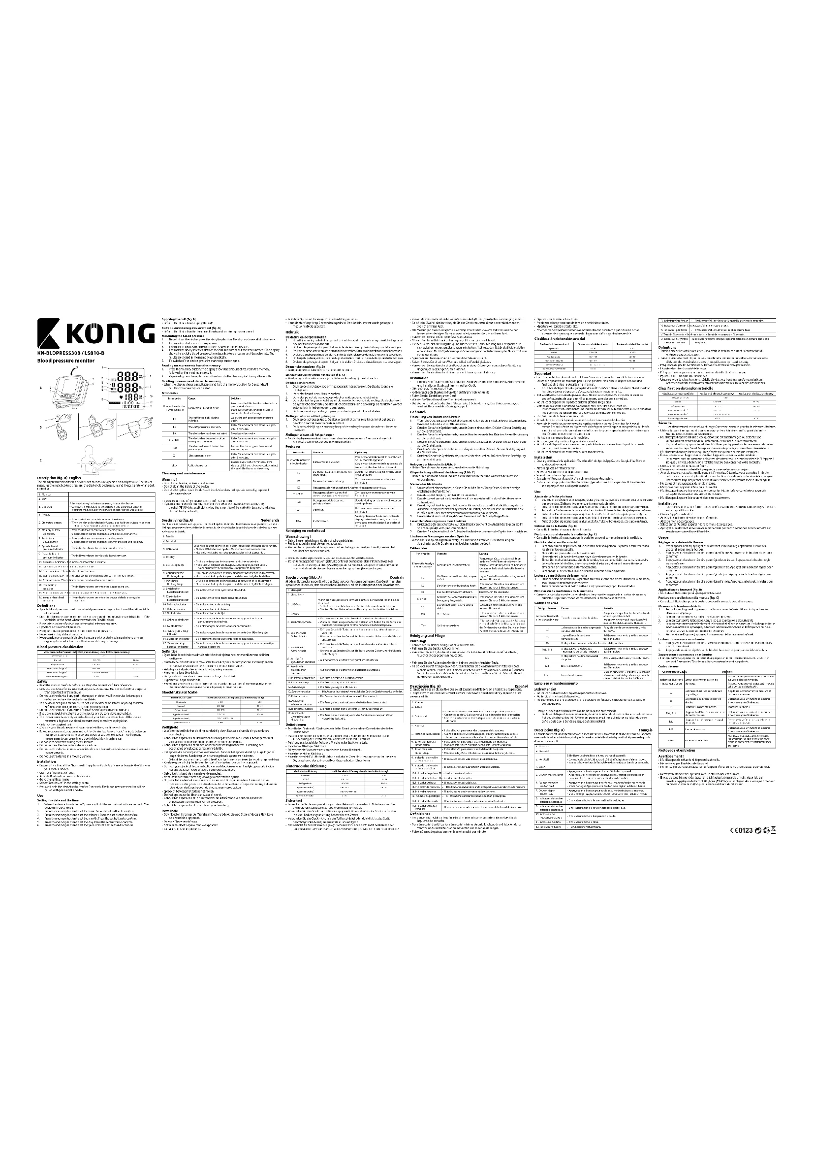 KNBLDPRESS30B - Tensiomètre KONIG - Notice d'utilisation et mode d'emploi gratuit