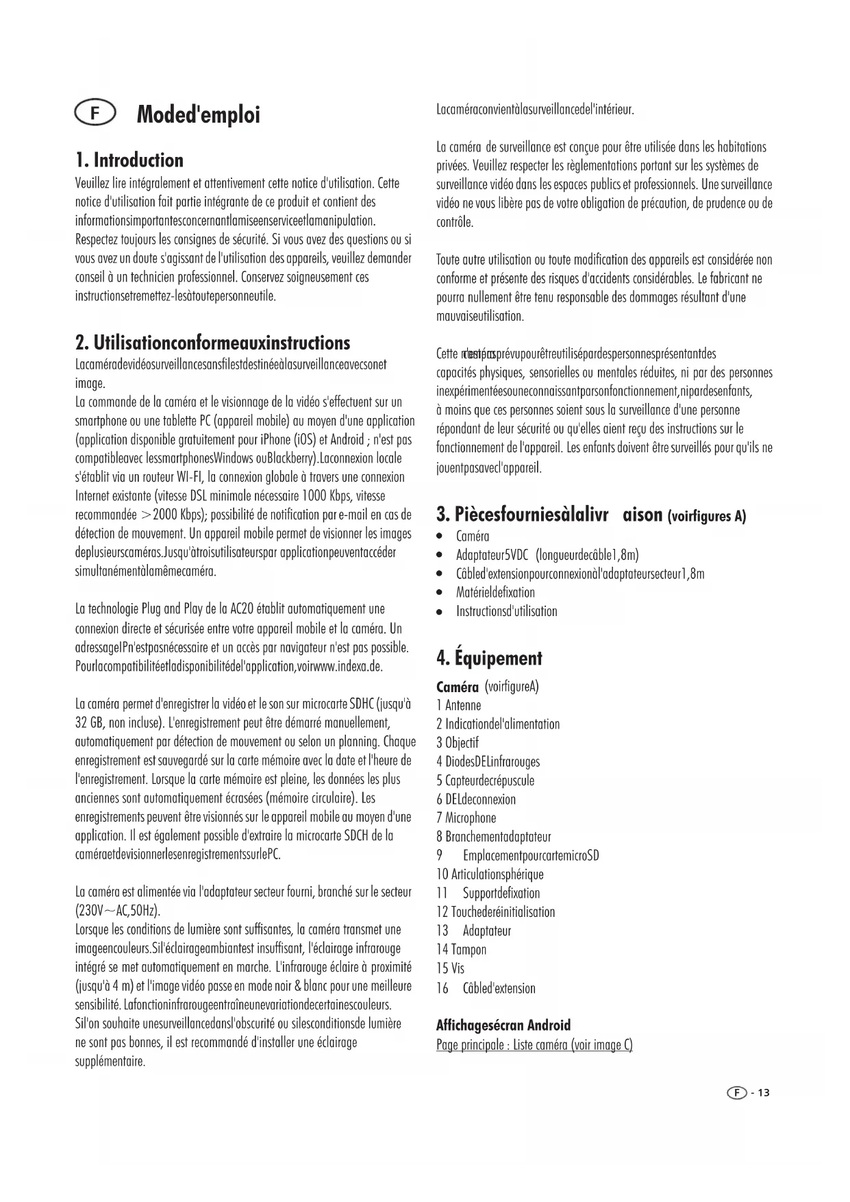 La caméra de surveillance est conçue pour être utilisée dans les habitations privées. Veuillez respecter les règlementations portant sur les systèmes de surveillance vidéo dans les espaces publics et professionnels. Une surveillance vidéo ne vous libère pas de votre obligation de précaution, de prudence ou de contrôle.