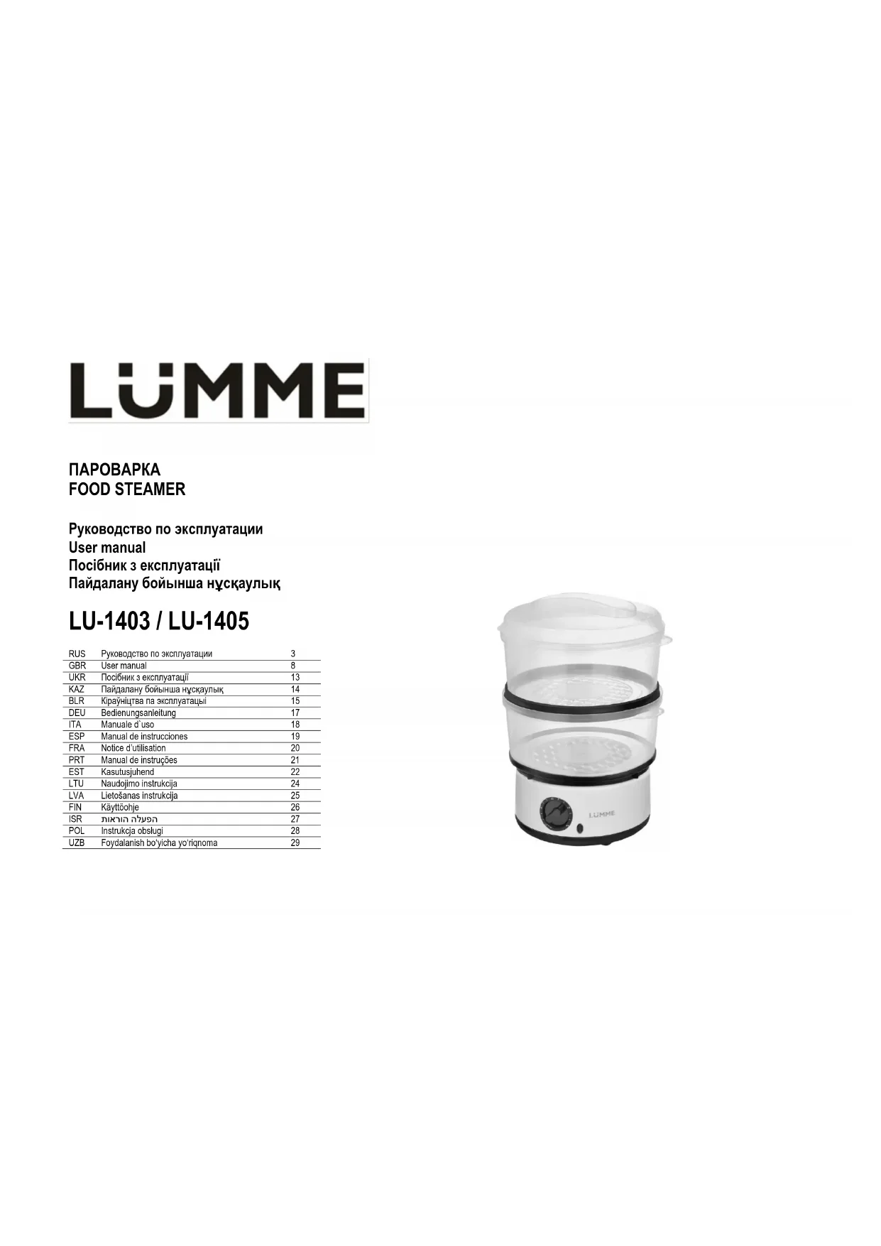 LU1403 - Cuiseur vapeur LUMME - Notice d'utilisation et mode d'emploi gratuit