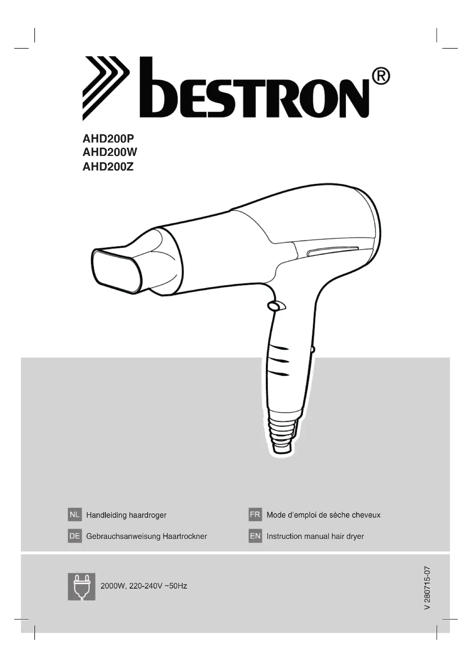AHD2000Z - Sèche cheveux BESTRON - Notice d'utilisation et mode d'emploi gratuit