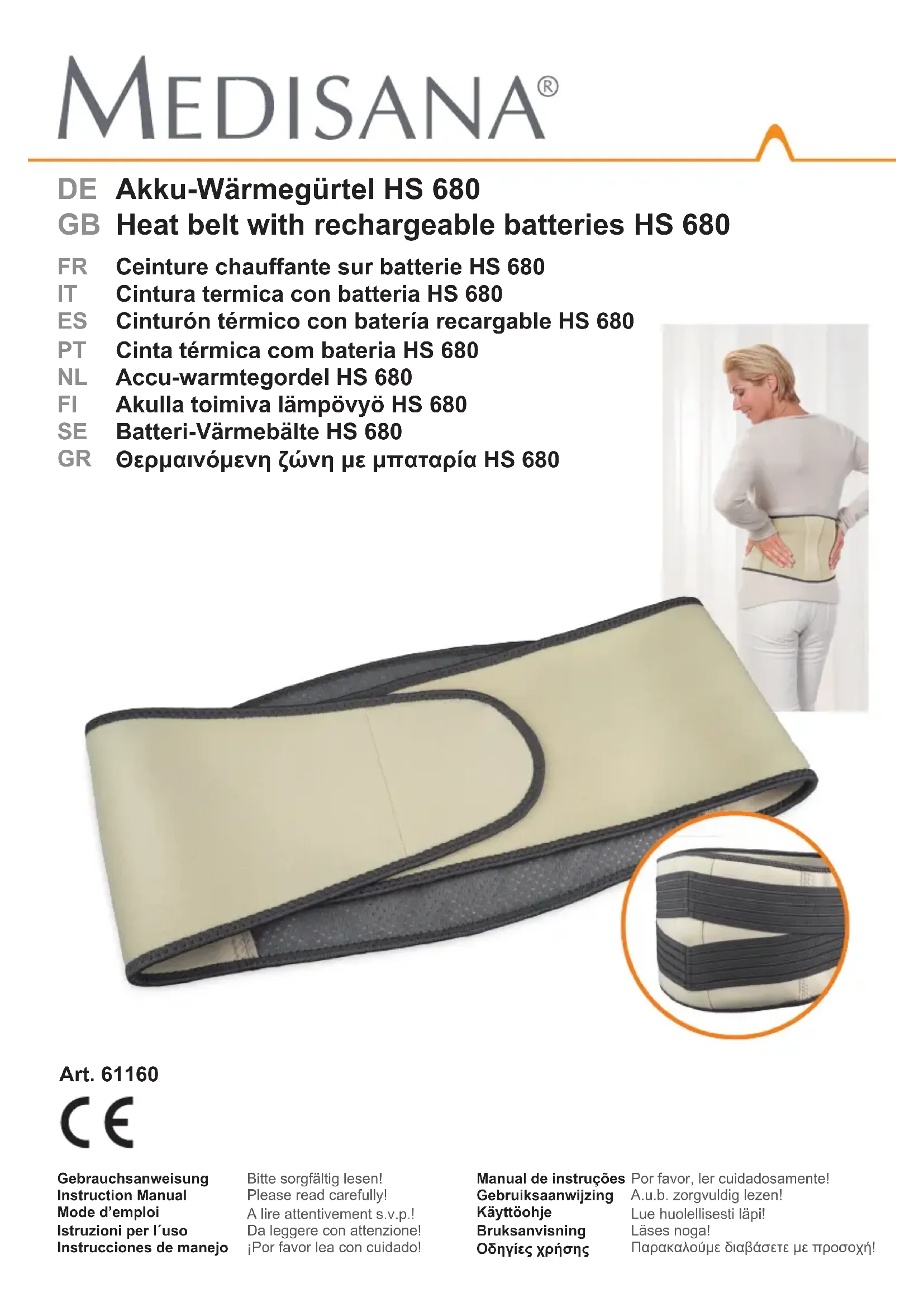 - 1 Mode d’emploi Les emballages sont réutilisables ou peuvent être recyclés an de ré- cupérer les matières premières. Respectez les règles de protection de l’environnement lorsque vous jetez les emballages dont vous n’avez plus besoin. Si vous remarquez lors du déballage un dommage survenu durant le transport, contactez immédiatement votre revendeur. Félicitations et merci de votre conance! Avec cette ceinture chauffante sur batterie HS 680, vous avez acheté un produit de qualité MEDISANA. An d’atteindre le succès escompté et que vous puissiez bénécier encore longtemps de votre ceinture chauffante sur batterie HS 680 nous vous recommandons de lire attentivement ces instructions d’utilisation et d’entretien.