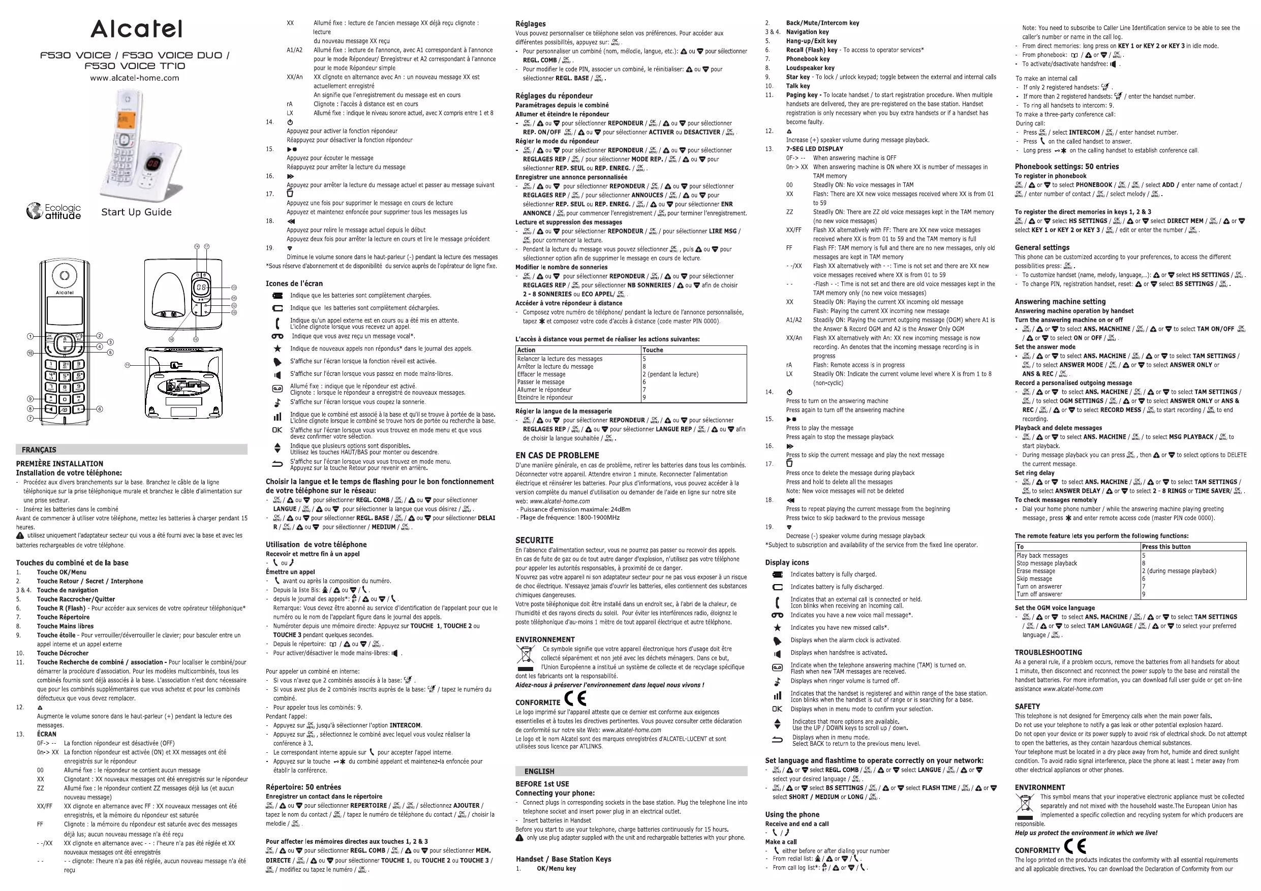 F530 - Téléphone fixe sans fil ALCATEL - Notice d'utilisation et mode d'emploi gratuit