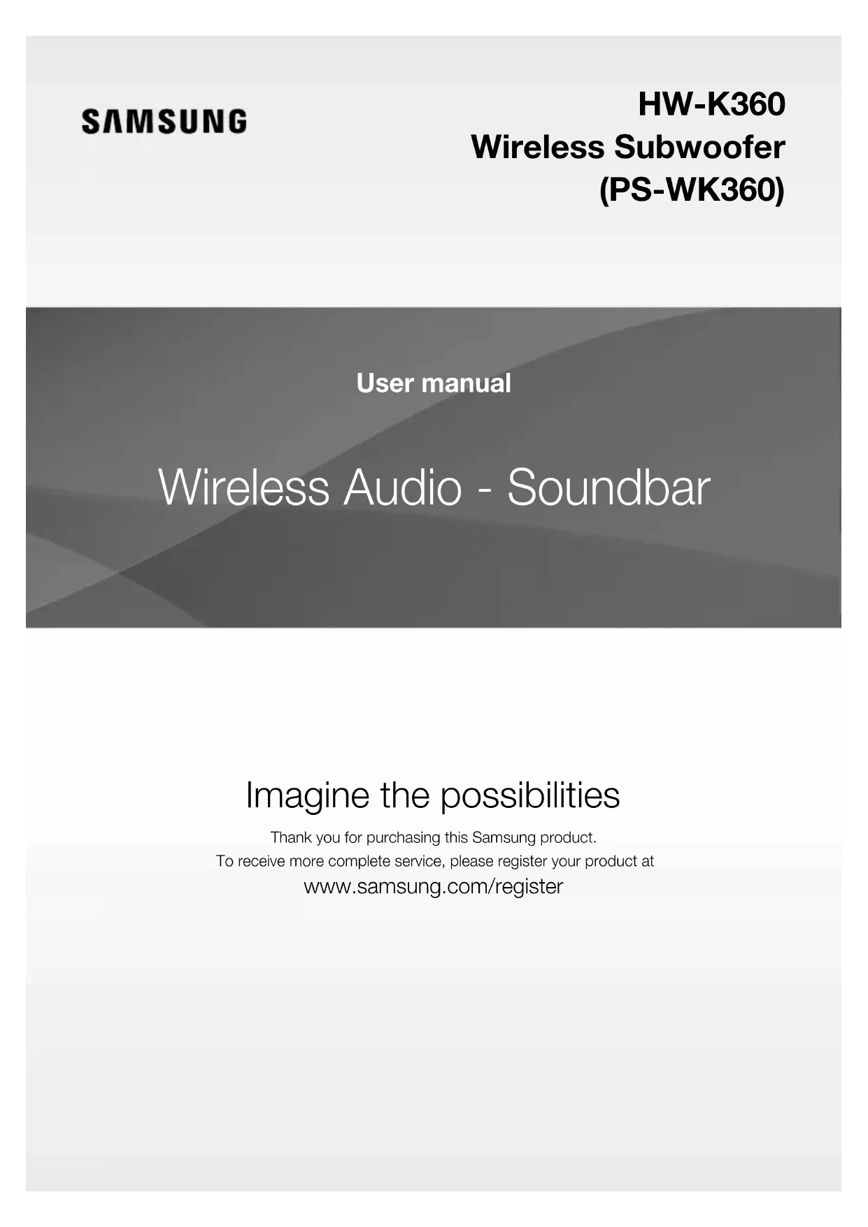 Téléchargez la notice de votre Barre de son au format PDF gratuitement ! Retrouvez votre notice HWK360 - SAMSUNG et reprennez votre appareil électronique en main. Sur cette page sont publiés tous les documents nécessaires à l'utilisation de votre appareil HWK360 de la marque SAMSUNG.