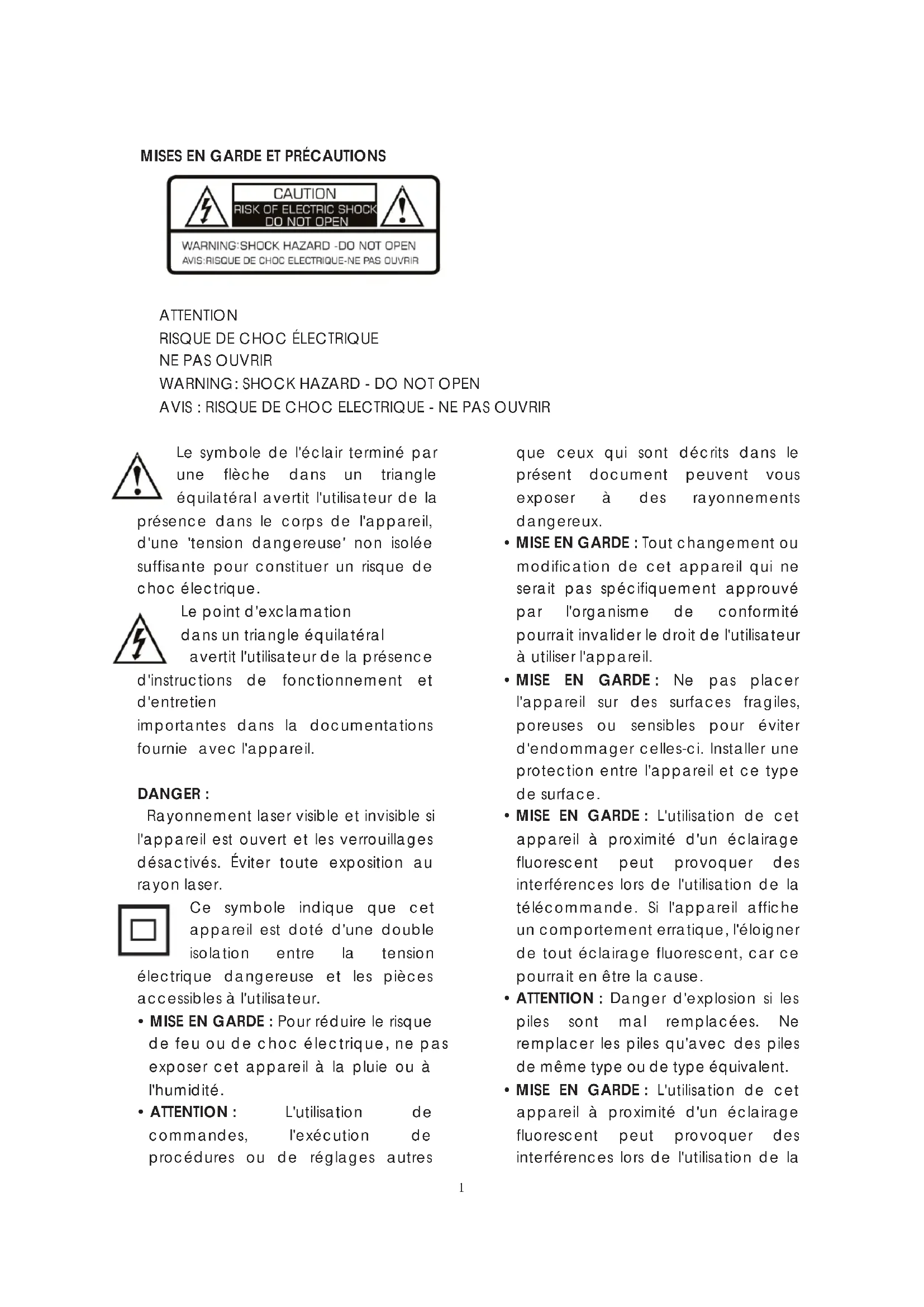 - MISE EN GARDE : Risque de choc électrique – Ne pas ouvrir