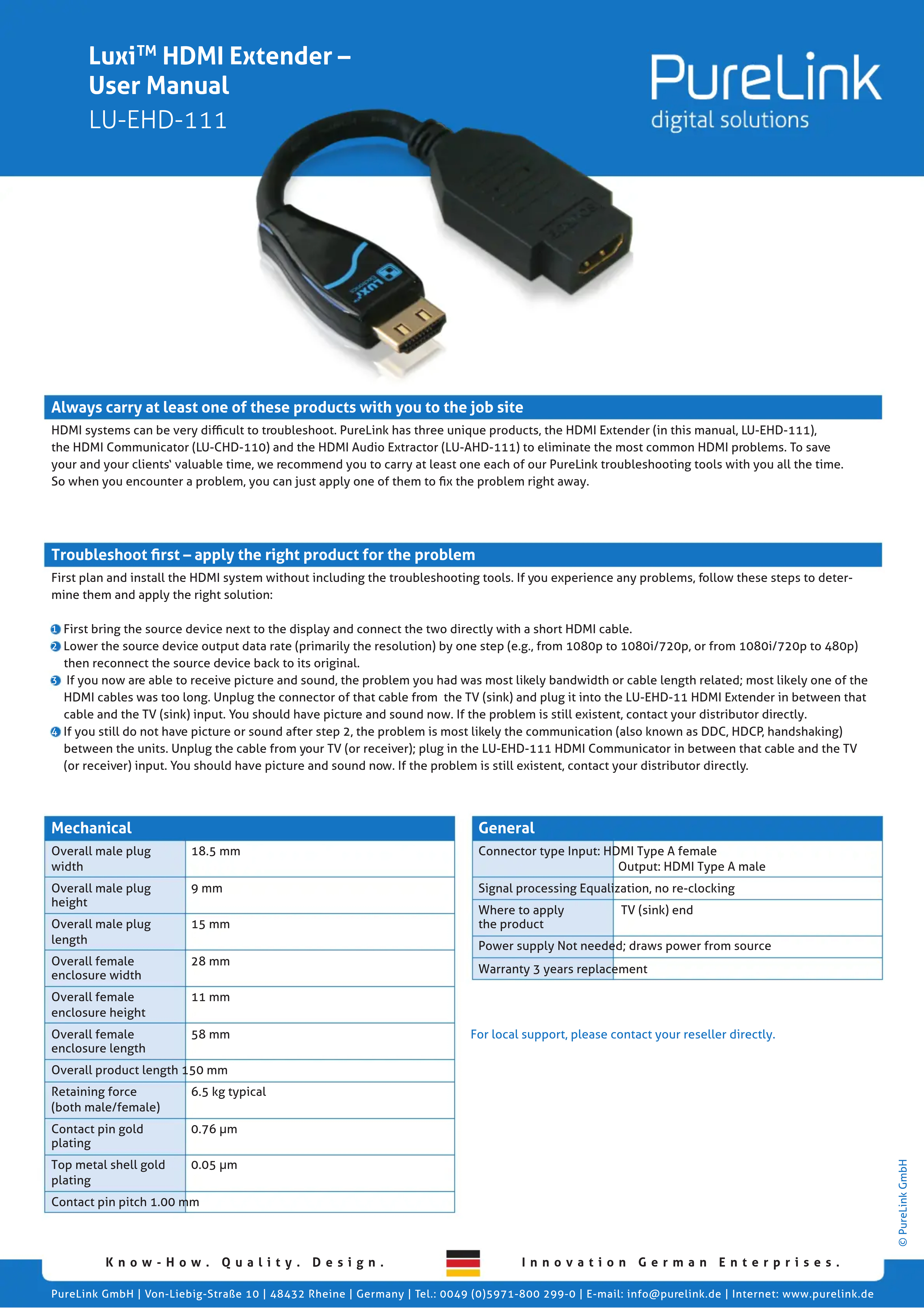 Retrouvez gratuitement la notice de l'appareil LUEHD111 PureLink au format PDF.