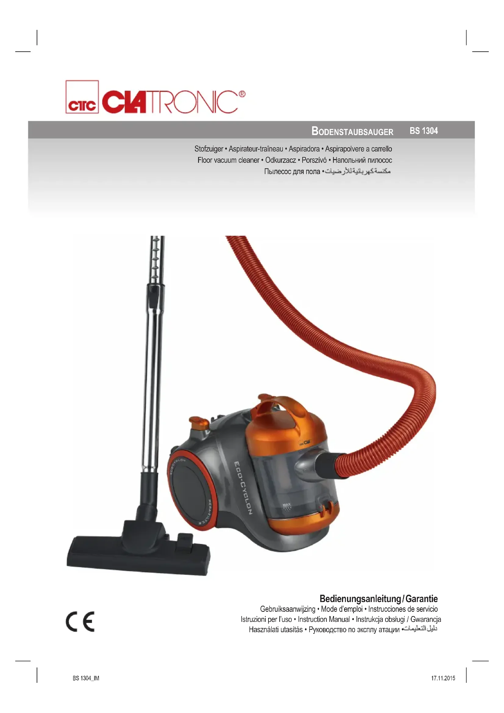 BS 1304 P - Aspirateur CLATRONIC - Notice d'utilisation et mode d'emploi gratuit