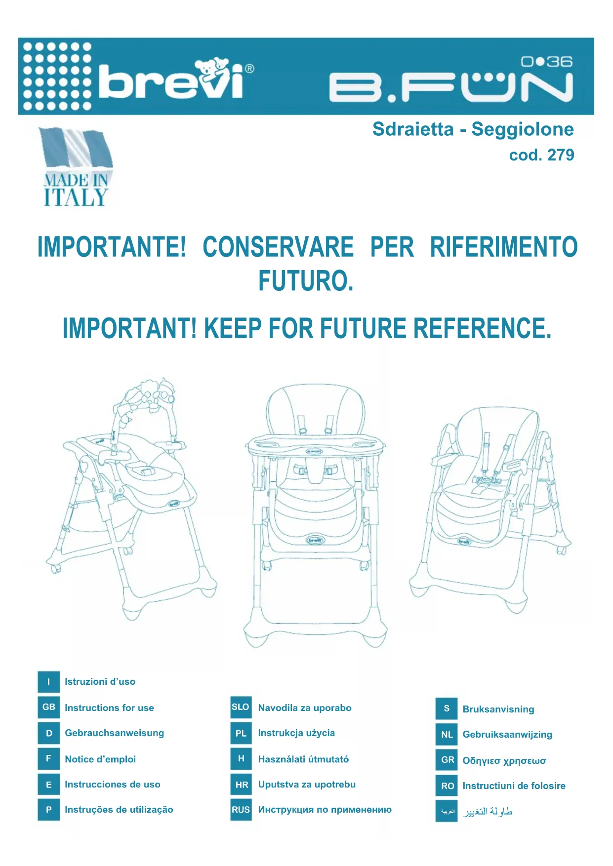 B.FUN - Chaise haute Brevi - Notice d'utilisation et mode d'emploi gratuit