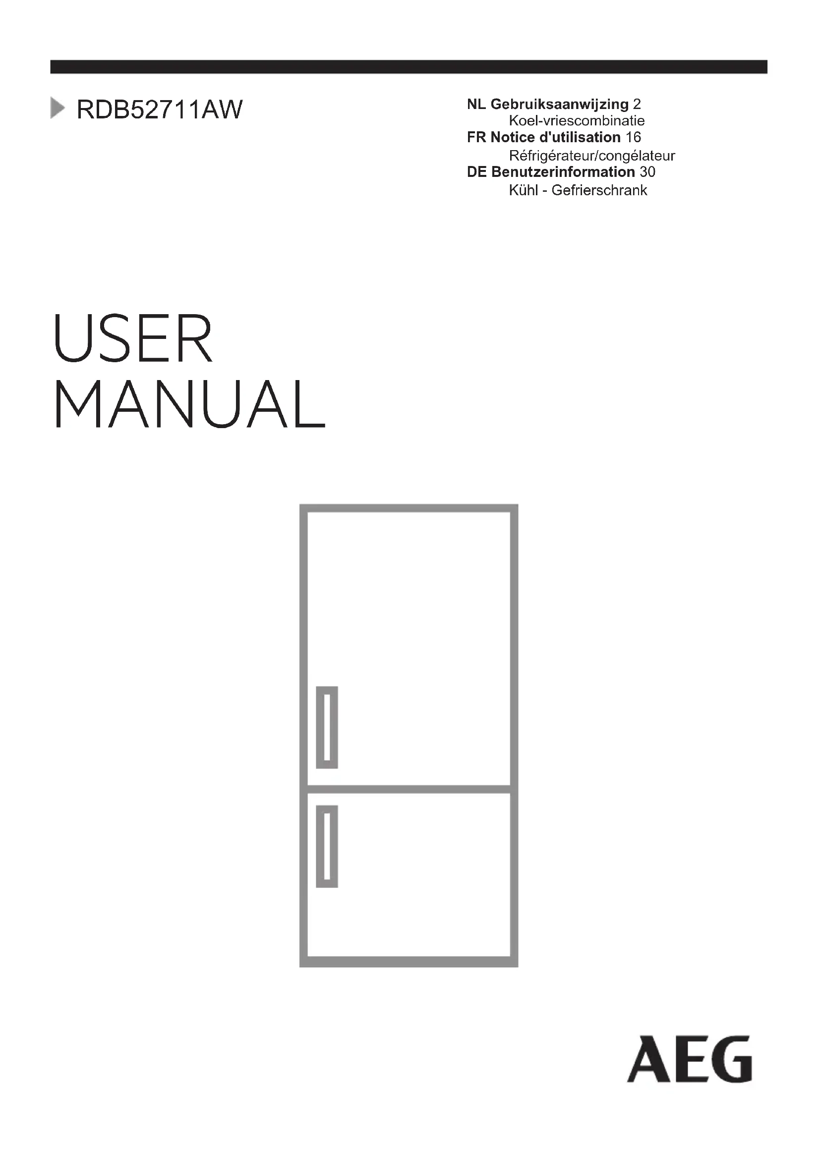 Retrouvez gratuitement la notice de l'appareil RDB52711AW AEG au format PDF.
