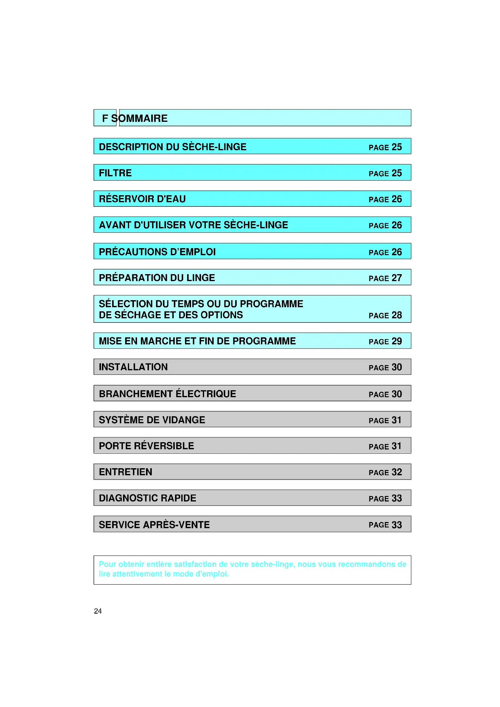 Pour obtenir entière satisfaction de votre sèche-linge, nous vous recommandons de lire attentivement le mode d'emploi.25