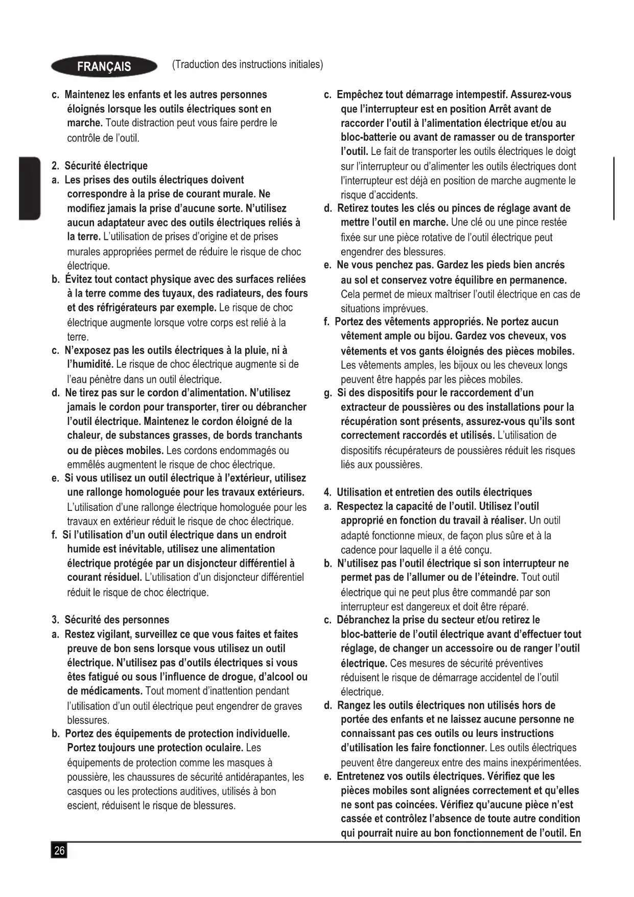 4. Utilisation et entretien des outils électriques