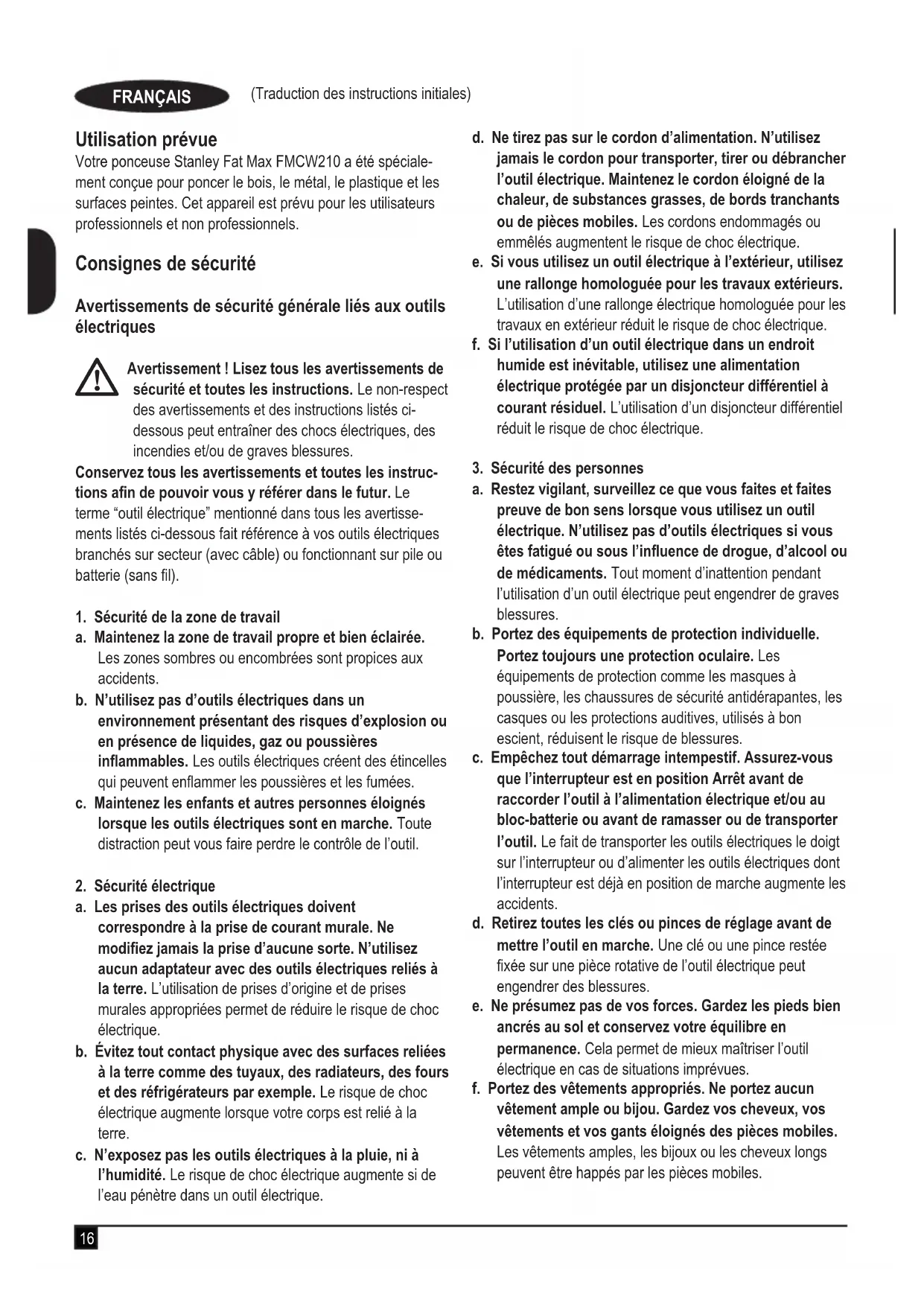 Téléchargez la notice de votre Ponceuse au format PDF gratuitement ! Retrouvez votre notice FMCW210 - STANLEY et reprennez votre appareil électronique en main. Sur cette page sont publiés tous les documents nécessaires à l'utilisation de votre appareil FMCW210 de la marque STANLEY.