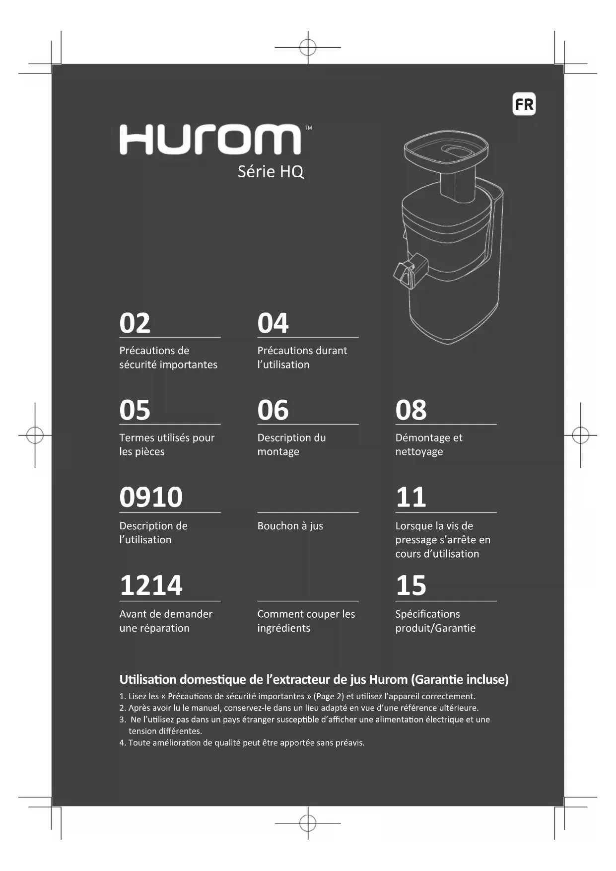 H16 HQ - Extracteur de jus Hurom - Notice d'utilisation et mode d'emploi gratuit