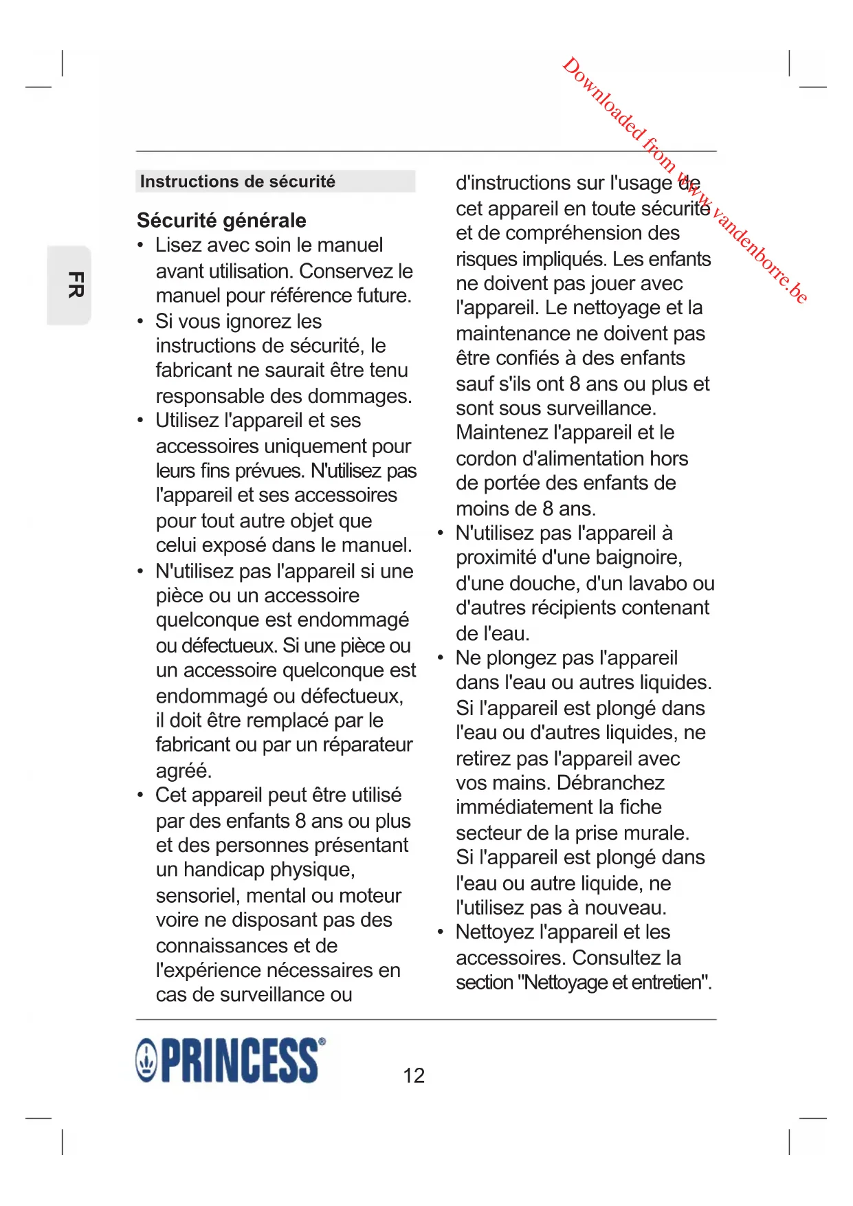 - Nettoyez l'appareil et les accessoires. Consultez la section "Nettoyage et entretien". Downloaded from www.vandenborre.be13