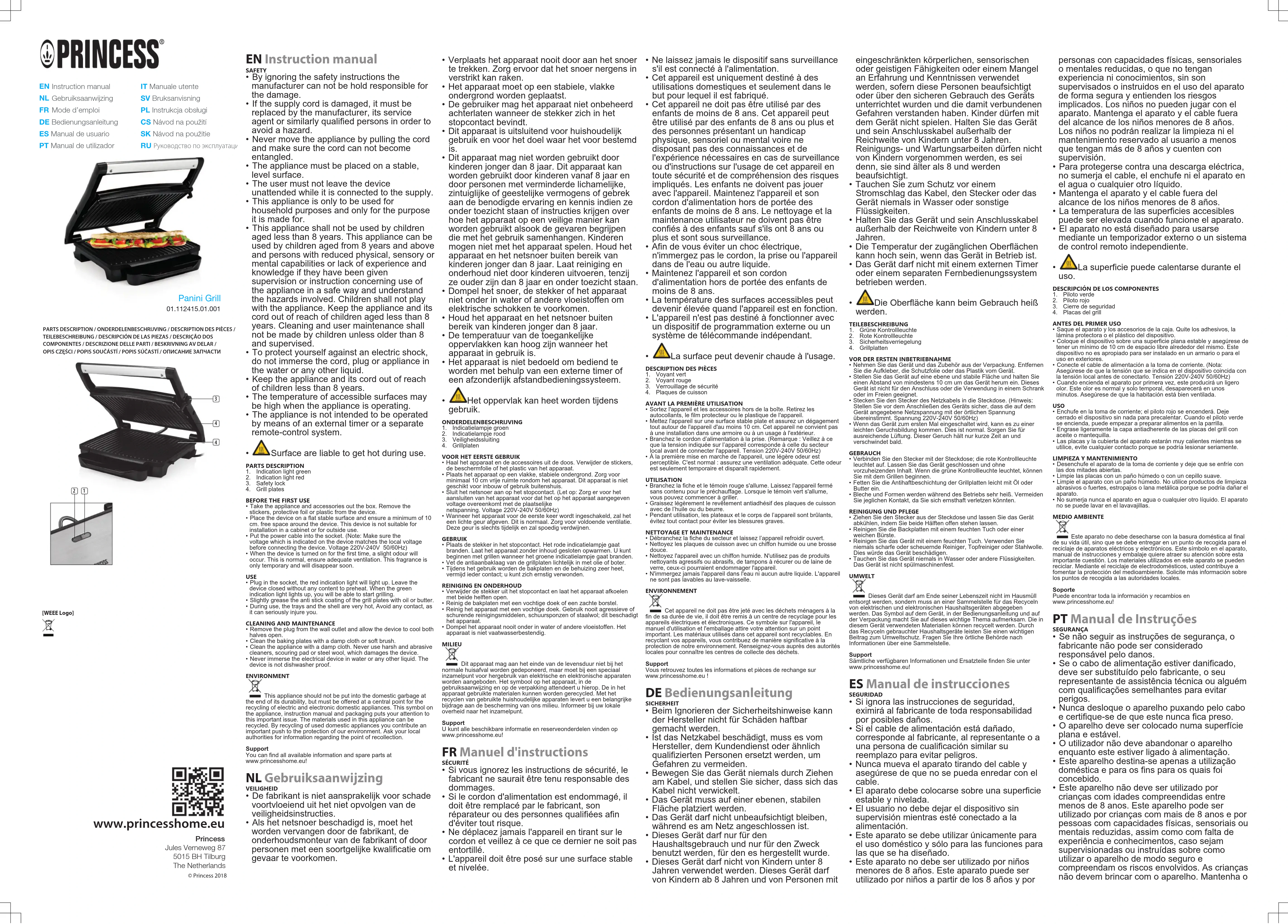 Retrouvez gratuitement la notice de l'appareil Panini Grill 112415 PRINCESS au format PDF.