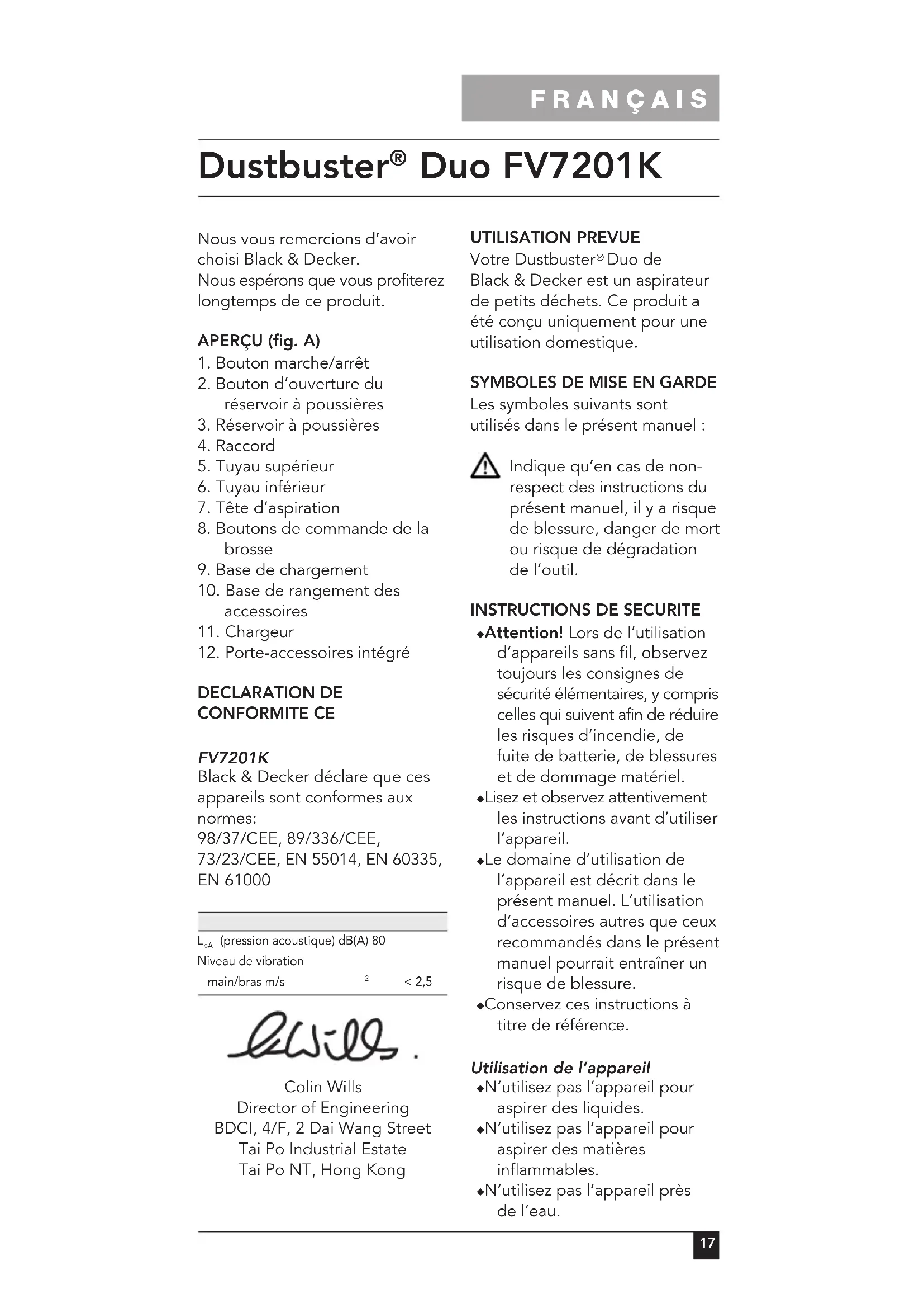 MODE D'EMPLOI FV7201 BLACK & DECKER