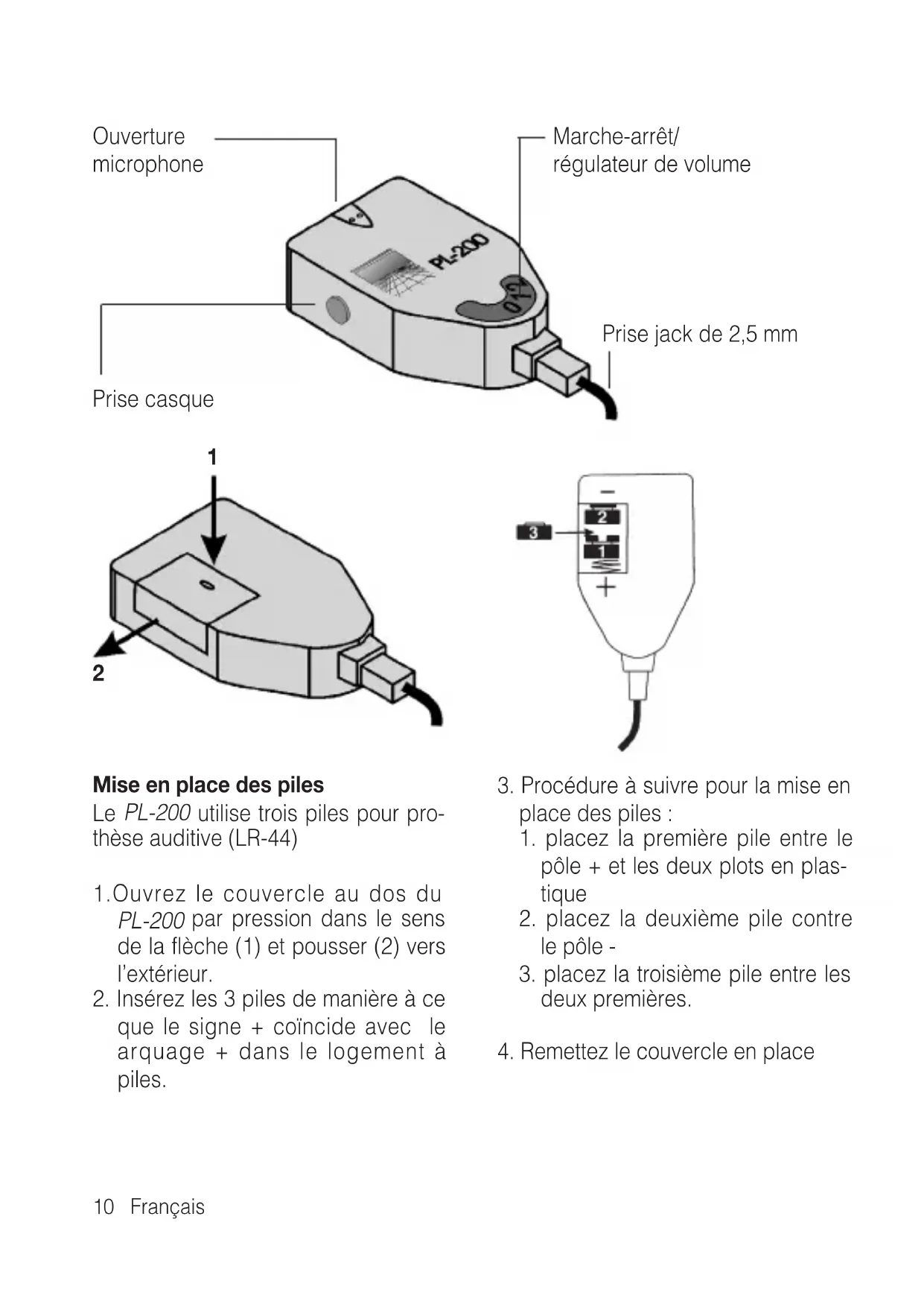 Le PL-200 utilise trois piles pour prothese auditive (LR-44)