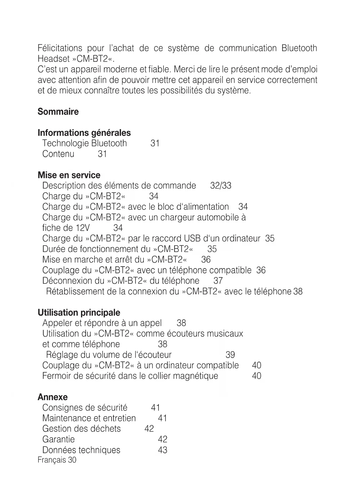 Félicitations pour l'achat de ce système de communication Bluetooth Headset CM-BT2 .