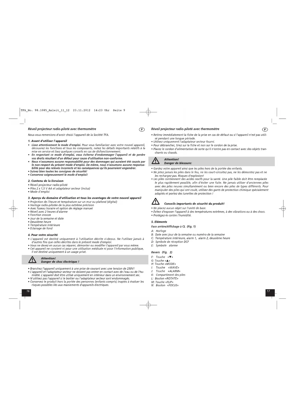 Retrouvez gratuitement la notice de l'appareil 98.1085 TFA au format PDF.