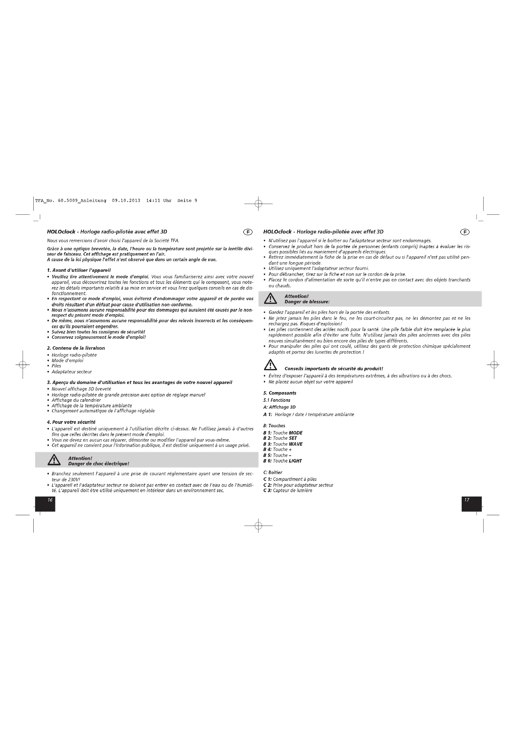 Retrouvez gratuitement la notice de l'appareil 60.5009 TFA au format PDF.
