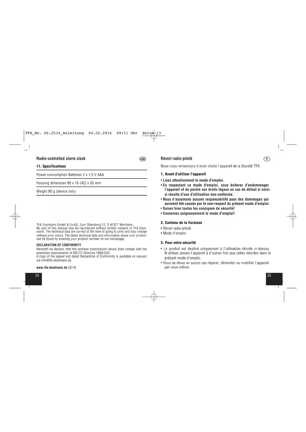 Retrouvez gratuitement la notice de l'appareil 60.2534 TFA au format PDF.