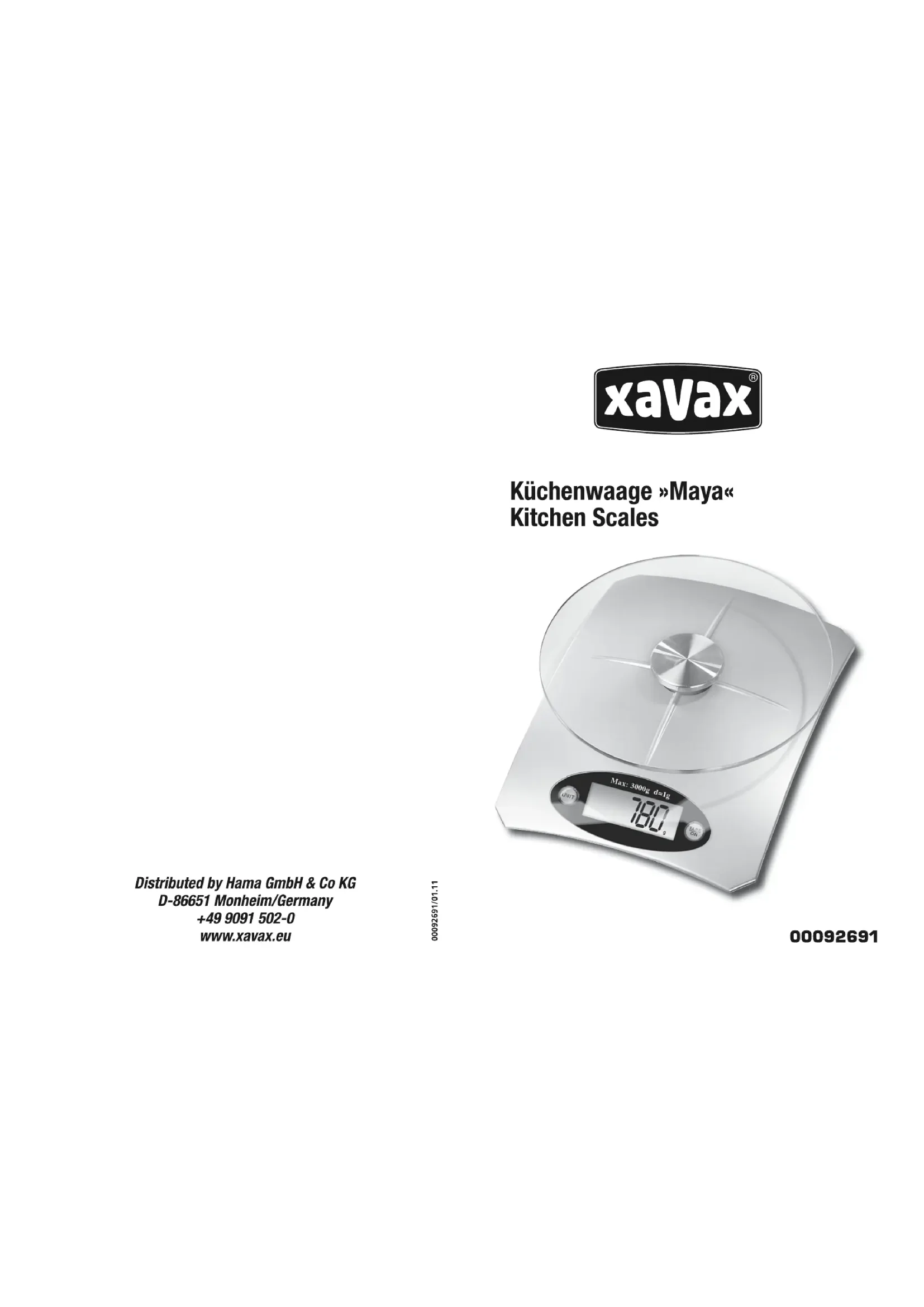 Maya 92691 - Balances de cuisine Xavax - Notice d'utilisation et mode d'emploi gratuit