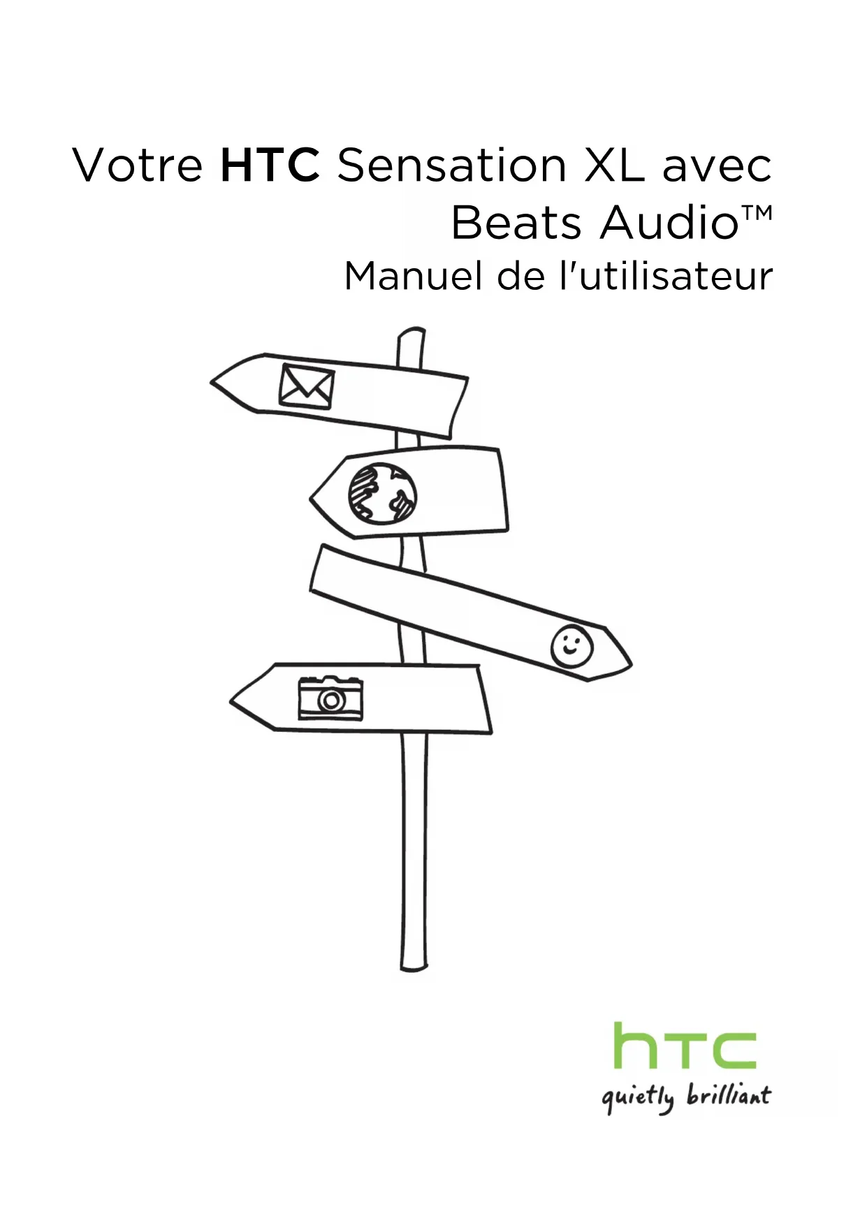 Votre HTC Sensation XL avec Beats Audio™ Manuel de l'utilisateurContenu Premiers pas À l’intérieur de la boîte 8 HTC Sensation XL avec Beats Audio 8 Capot arrière 10 Carte SIM 11 Batterie 12 Allumer ou éteindre l'appareil 14 Saisie du code PIN 15 Mouvements du doigt 15 Configurer le HTC Sensation XL avec Beats Audio pour la première fois 16 Méthodes pour ajouter des contacts dans le HTC Sensation XL avec Beats Audio 16 Écran d’accueil 17 Brancher votre casque Beats 18 Les bases Réglage du volume 19 Mode Veille 20 États et notifications 21 Panneau Notifications 24 Connexion du téléphone à un ordinateur 26 Copier des fichiers de/vers la mémoire du téléphone 27 Copier du texte, rechercher des informations, et partager 28 Impression 29 Vous voulez des conseils rapides sur l'utilisation de votre téléphone? 30 Personnalisation Personnaliser votre HTC Sensation XL avec Beats Audio 32 Personnaliser votre HTC Sensation XL avec Beats Audio avec des thèmes 32 Changer votre papier peint 34 Définir un nouveau skin 34 Personnaliser votre écran d'accueil avec des widgets 35 Ajouter des icônes et d'autres raccourcis sur votre écran d'accueil 37 Ajouter des dossiers sur votre écran d'accueil 37 Réorganiser ou supprimer des widgets et des icônes sur l'écran d'accueil 38 Réorganiser l'écran d'accueil 39 Utiliser les jeux de sons 40 Réorganiser ou masquer des onglets d'application 41 Personnaliser le style de l'écran verrouillé 42 Appels Différentes façons d'effectuer des appels 43 Effectuer un appel sur l'écran Numéroteur téléphonique 43 2 ContenuUtiliser la numérotation rapide 44 Appeler un numéro de téléphone depuis un SMS 45 Appeler un numéro de téléphone à partir d'un email 45 Appeler un numéro de téléphone depuis un événement de l'Agenda 45 Effectuer un appel d'urgence 46 Réception des appels 46 Que puis-je faire pendant un appel? 47 Configurer une conférence téléphonique 49 Appels Internet 49 Utiliser l'historique des appels 50 Utiliser l'appel maison 52 Services d'appel 53 Activer/désactiver le mode Avion 54 Messages Ouvrir l'application Messages 55 Envoyer un message texte (SMS) 55 Envoyer un message multimédia (MMS) 56 Reprendre un brouillon de message 58 Afficher et répondre à un message 59 Transférer un message 61 Afficher et enregistrer la pièce jointe d'un MMS 61 Messages Push 62 Gestion des fils de message 63 Sauvegarder vos SMS 64 Configurer les options de message 65 Recherche et navigateur Web Rechercher sur HTC Sensation XL avec Beats Audio et sur le Web 66 Utiliser le navigateur Web 68 Télécharger depuis le Web 70 Afficher les favoris et les pages consultées précédemment 71 Configurer les options du navigateur 73 Appareil photo Bases de l'appareil photo 74 Prendre une photo 75 Enregistrer une vidéo 76 Ajouter des effets 77 Après la capture 77 Thèmes de l'appareil photo 78 Prendre une photo panoramique 78 Prendre des photos en continu 79 Prendre une photo à grande gamme dynamique (HDR) 79 Modifier les paramètres de l'appareil photo 79 Photos, vidéos, et musique Galerie 81 Musique 90 Média connecté 95 3 ContenuServices HTC HTC Watch 97 HTCSense.com 101 Comptes et synchronisation À propos des comptes en ligne 105 Synchronisation avec un compte Google 106 Ajouter un compte de réseau social 107 Gérer vos comptes en ligne 107 Contacts Transférer les contacts de votre ancien téléphone 109 À propos de l'application Contacts 110 Votre liste de contacts 111 Configurer votre profil 112 Importer des contacts depuis votre carte SIM 112 Ajouter un nouveau contact 113 Rechercher des contacts 113 Importer un contact depuis un compte Exchange ActiveSync 114 Fusionner les informations de contact 115 Sauvegarder vos contacts 116 Informations et conversations d'un contact 117 Envoyer des informations de contact comme vCard 118 Groupes de contacts 119 Ajouter des widgets Contacts 121 Social Facebook pour HTC Sense 123 Twitter pour HTC Sense 124 Utiliser Friend Stream 125 Profiter de Facebook dans Friend Stream 127 Tweeter dans Friend Stream 128 Utilisation de Facebook chat 129 Chater avec Google Talk 130 E-mail Gmail 133 E-mail 134 Agenda À propos de l'Agenda 144 Créer un événement 144 Changer les vues de l'Agenda 145 Gestion des événements de l'Agenda 147 Accepter ou décliner une invitation à une réunion 148 Afficher, désactiver ou répéter les rappels d'événement 149 Afficher ou masquer les agendas 149 Changer les paramètres de l'Agenda 149 À propos du widget Agenda 150 4 ContenuCartes et localisations Paramètres de localisation 151 Localisations 152 Google Maps 161 Android Market et autres applications Rechercher et installer les applications de Android Market 166 Utiliser l'Horloge 168 Consulter la Météo 171 Lire des eBooks 172 Lire des flux d'actualités 176 Suivi de vos actions 178 Regarder des vidéos sur YouTube 179 Écouter la Radio FM 181 Utiliser la Flash 182 Partager des jeux et des applications 183 Productivité Travailler sur des documents 184 Envoyer des fichiers sur Dropbox 185 Enregistrer votre voix 186 Prendre des notes 187 Accomplir des tâches 191 HTC Sync À propos de HTC Sync 195 Installer HTC Sync 196 Configurer HTC Sync pour identifier le HTC Sensation XL avec Beats Audio 196 Apprendre à connaître l'espace de travail 197 Configurer la synchronisation 197 Synchroniser HTC Sensation XL avec Beats Audio 201 Installer une application de votre ordinateur sur votre HTC Sensation XL avec Beats Audio 202 Télécharger des cartes ou acheter des services 202 Synchroniser un autre appareil avec votre téléphone 203 Télécharger la dernière mise à jour de HTC Sync 203 Clavier Utilisation du clavier à l'écran 204 Saisie prédictive de mots 206 Saisie de texte en parlant 207 Saisir du texte à l'aide du tracé 208 Modifier le texte 209 Régler les paramètres de saisie 210 Connexions Internet Connexion de données 211 Wi-Fi 212 Se connecter à un réseau privé virtuel (VPN) 214 Utiliser 