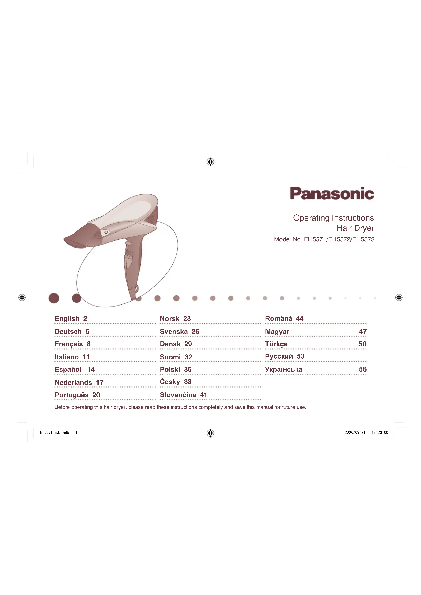 EH5571 - Sèche-cheveux PANASONIC - Notice d'utilisation et mode d'emploi gratuit