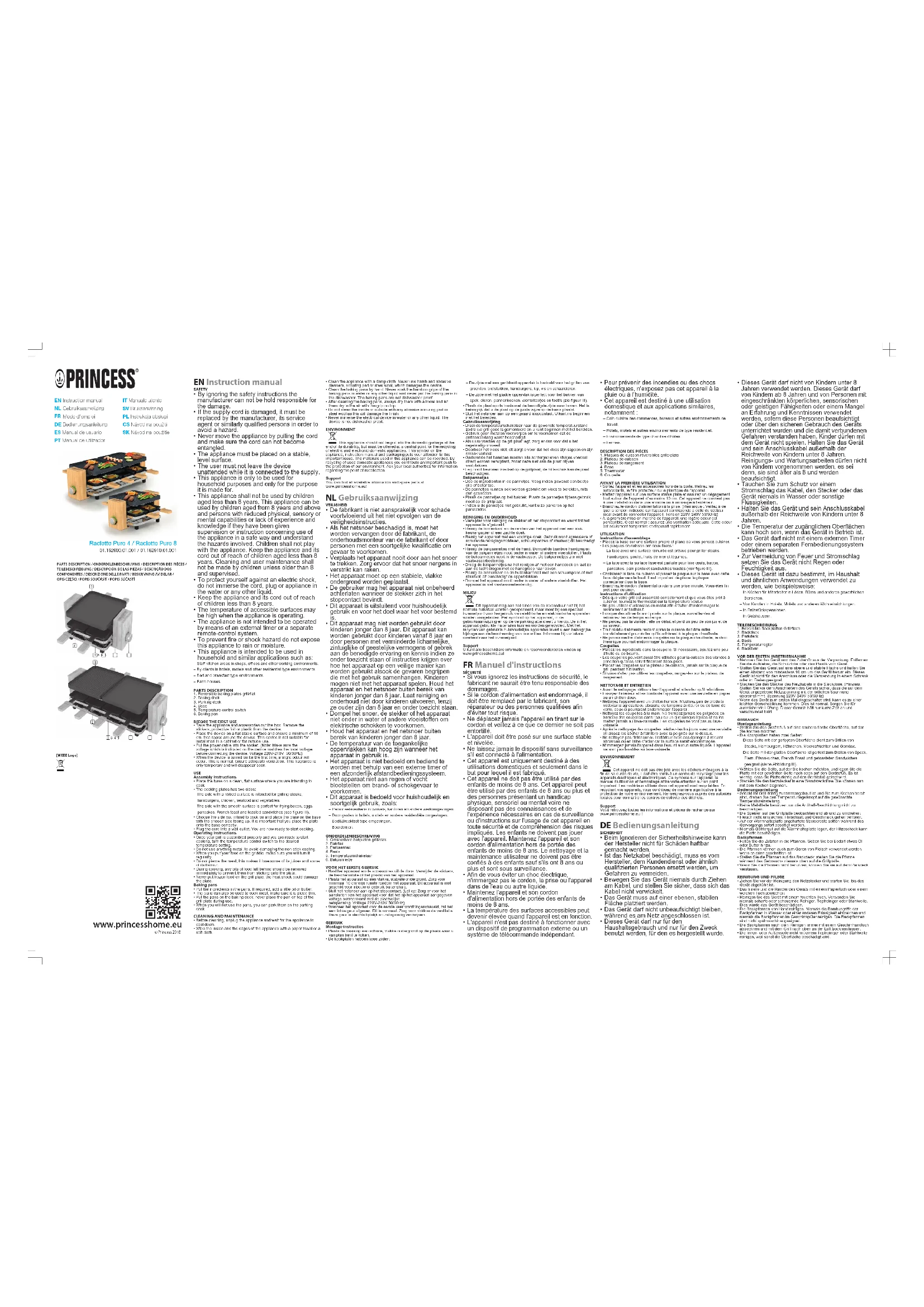 Retrouvez gratuitement la notice de l'appareil Raclette Pure 8 PRINCESS au format PDF.