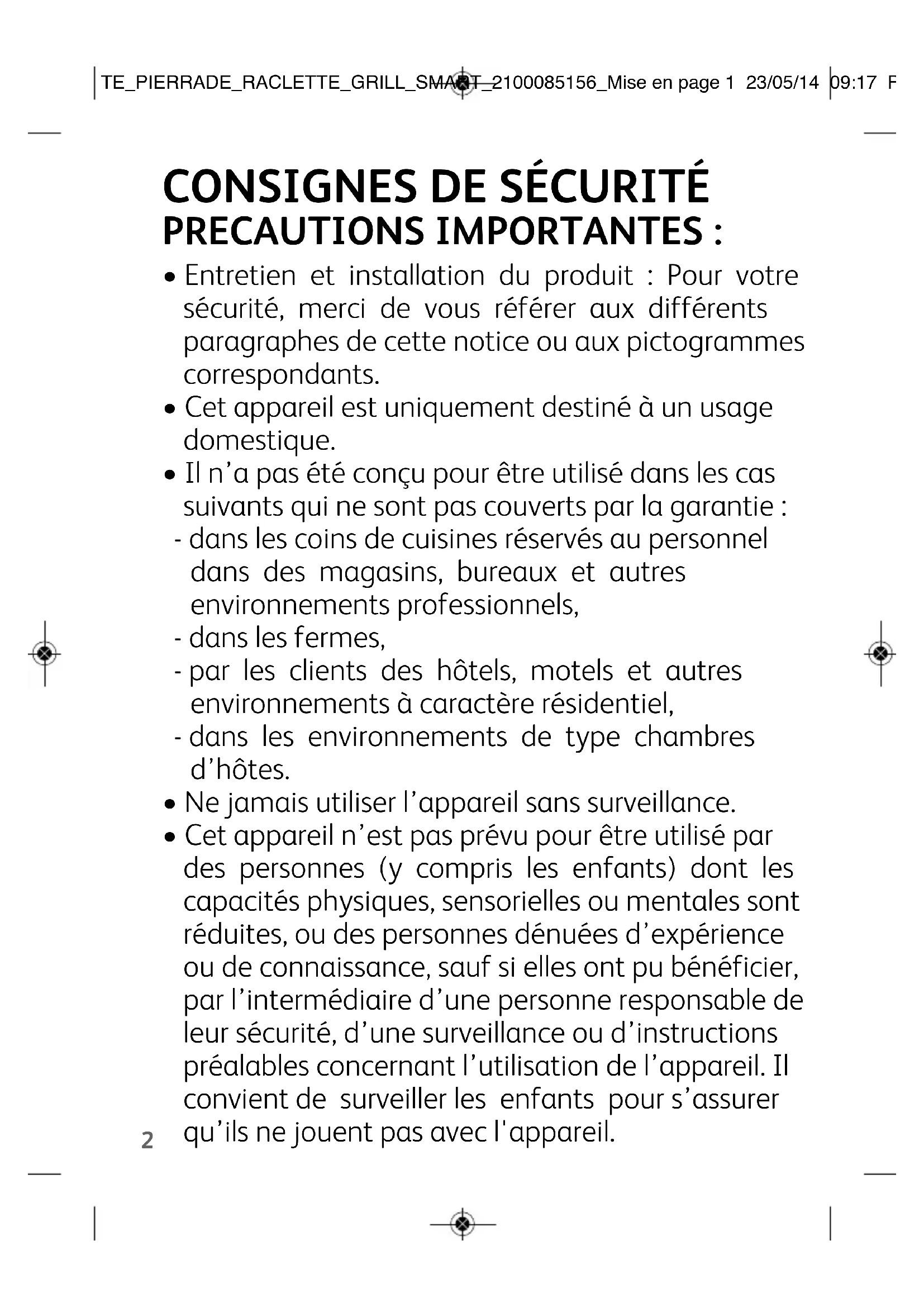 TE_PIERRADE_RACLETTE_GRILL_SMART_2100085156_Mise en page 1 23/05/14 09:17 Page2• La température des surfaces accessibles peut être élevée lorsque l'appareil est en fonctionnement.