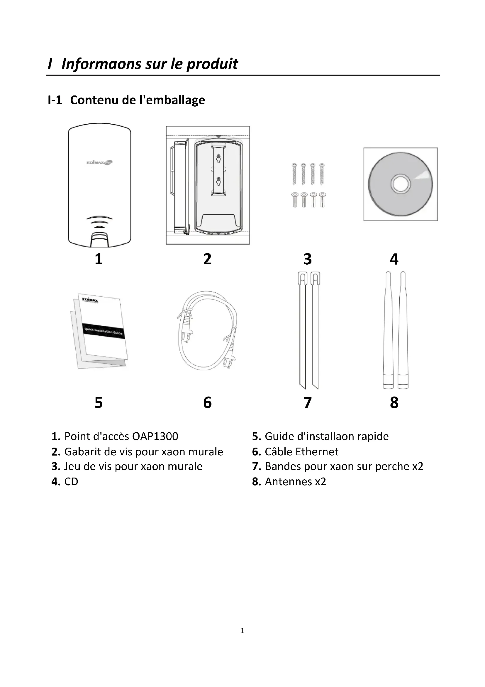 Guide d'installation rapide 11-2020 / v1.11 I Informations sur le produit I-1 Contenu de l'emballage