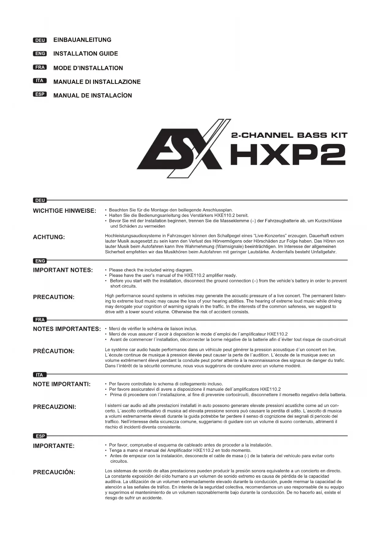 - Merci de vous assurer d´avoir à disposition le mode d´emploi de l´amplicateur HXE110.2
