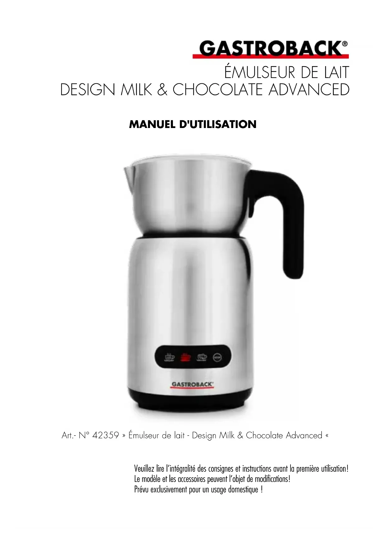 Design Milk & Chocolate Advanced 42359 - Mousseur à lait Gastroback - Notice d'utilisation et mode d'emploi gratuit