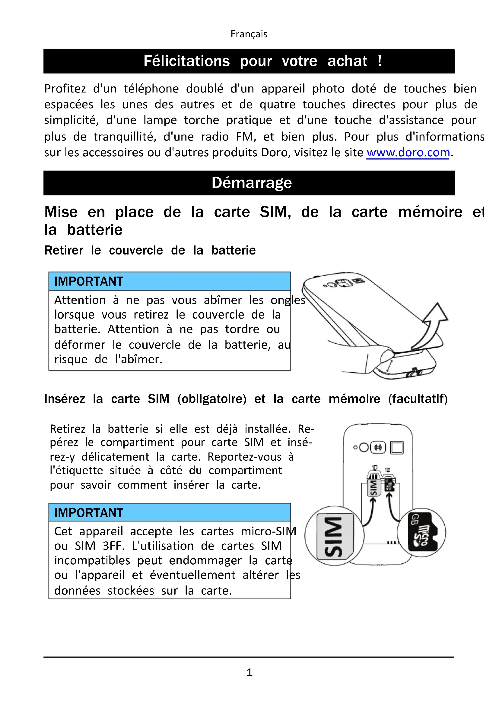 1370 - Smartphone DORO - Notice d'utilisation et mode d'emploi gratuit
