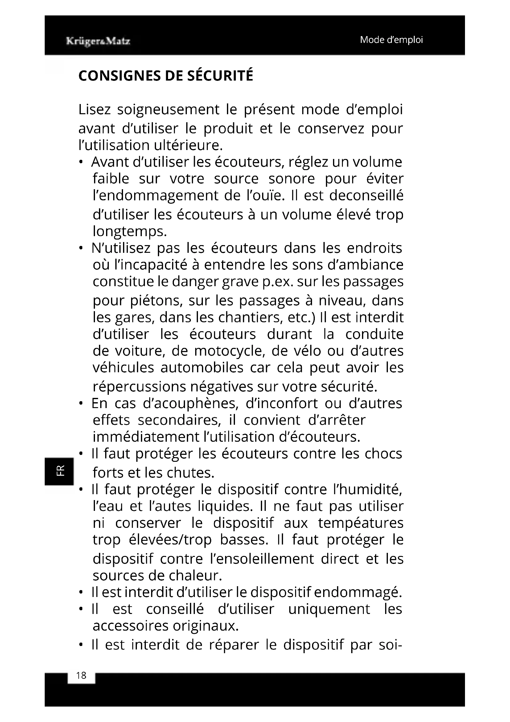 KMP81BT - Ecouteur Krüger&Matz - Notice d'utilisation et mode d'emploi gratuit