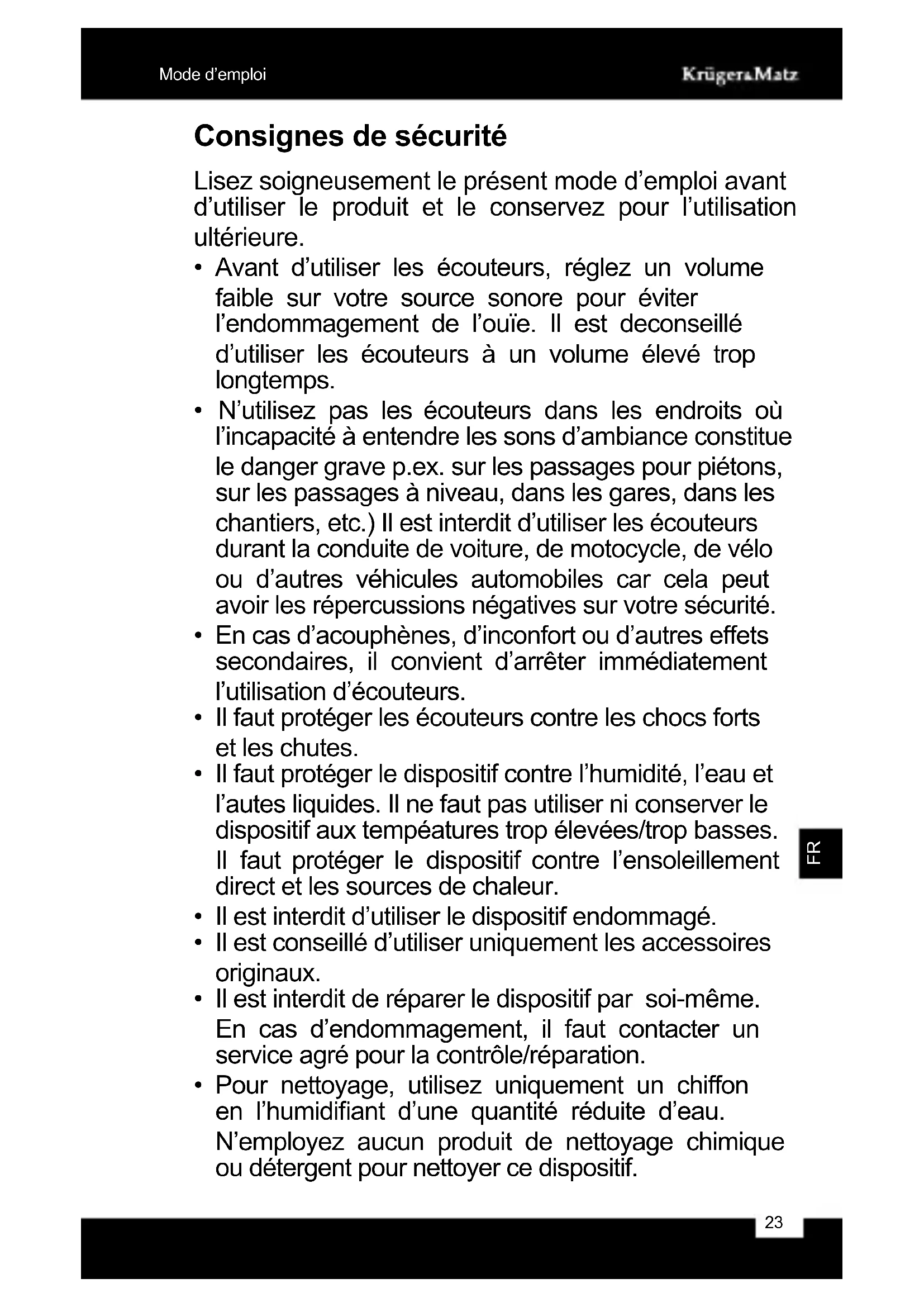 KMPM5 - Ecouteur Krüger&Matz - Notice d'utilisation et mode d'emploi gratuit