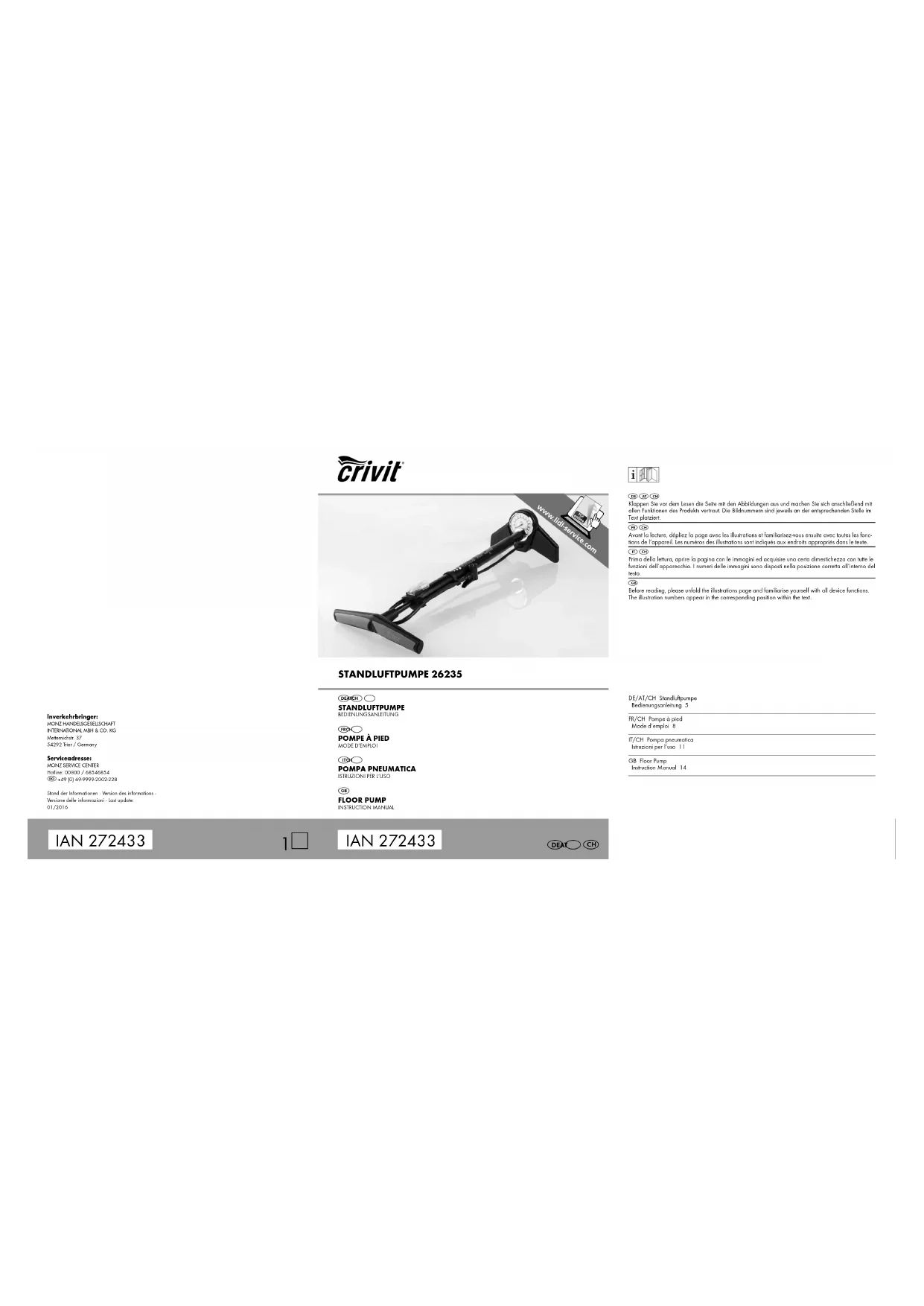 26235 - Pompe CRIVIT - Notice d'utilisation et mode d'emploi gratuit