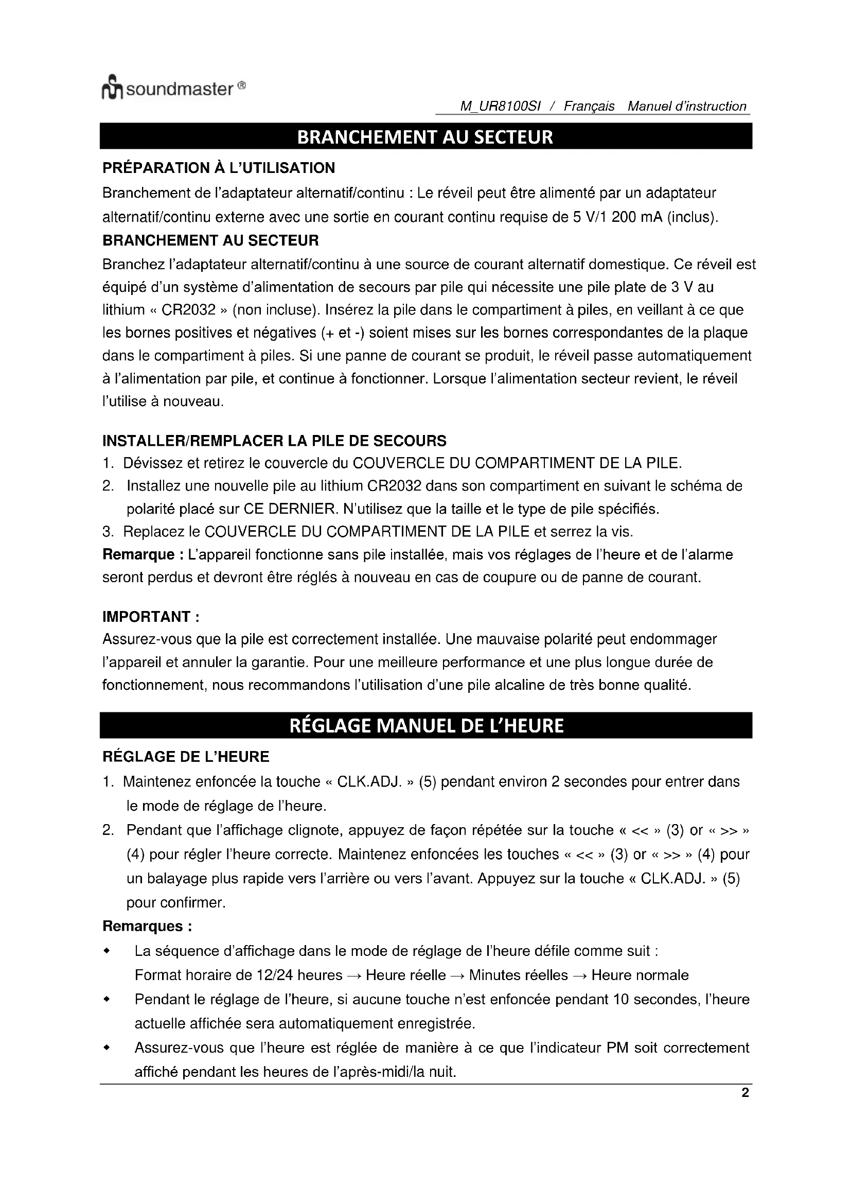 MODE D'EMPLOI UR8100SI Soundmaster