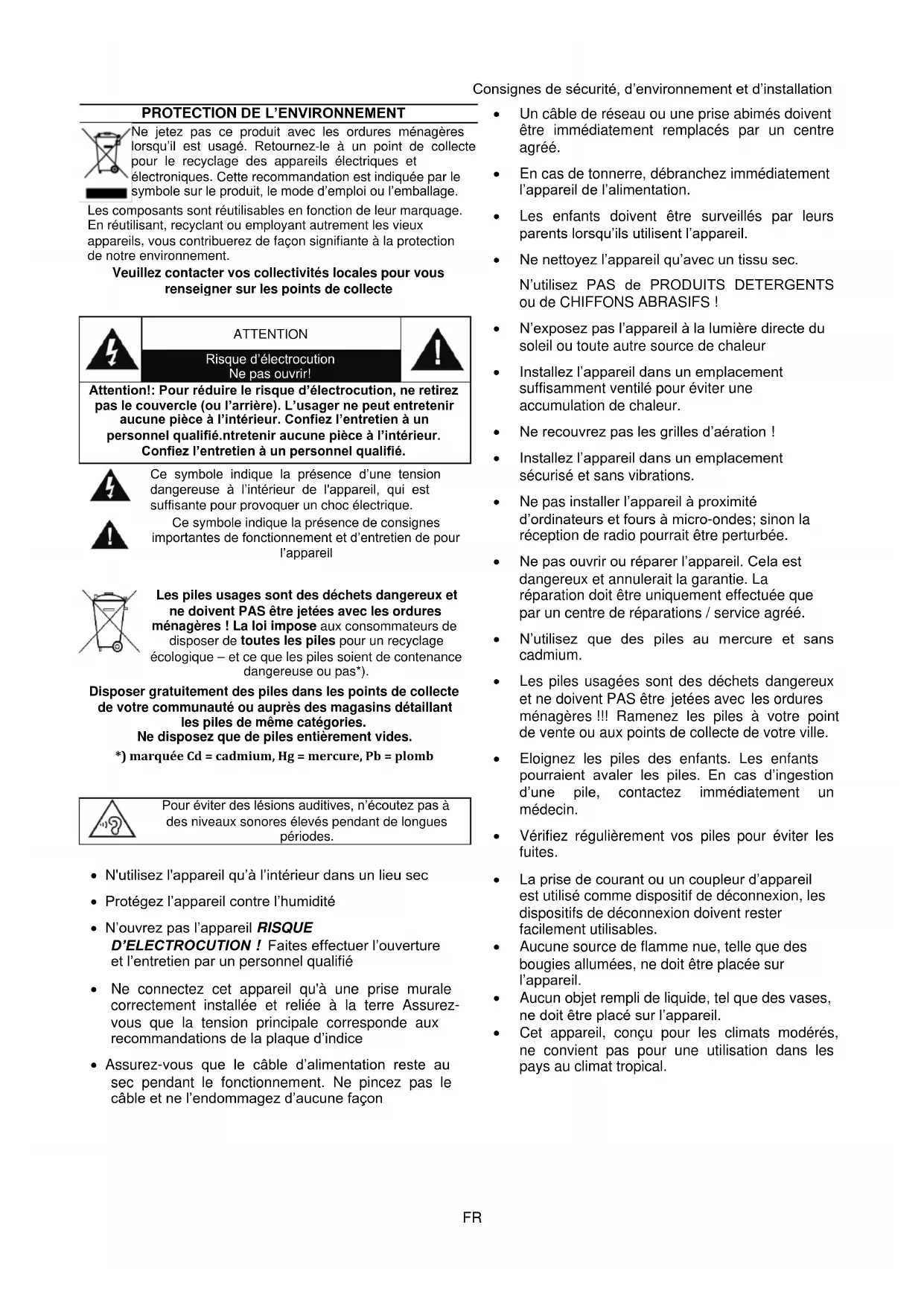 - Ne pas ouvrir ou réparer l'appareil. Cela est dangereux et annulerait la garantie. La réparation doit être uniquement effectue que par un centre de réparations / service agréé.