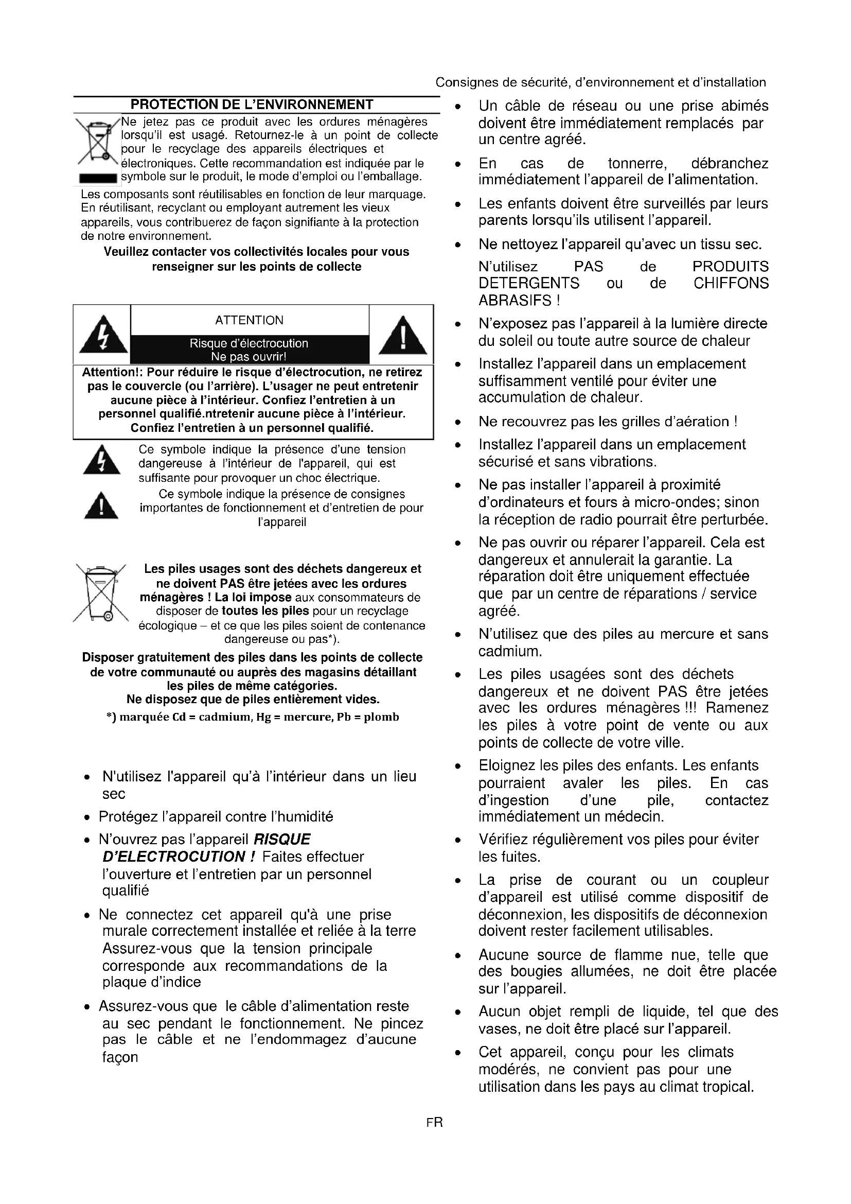 - Vérifiez régulierement vos piles pour éviter les fuites.