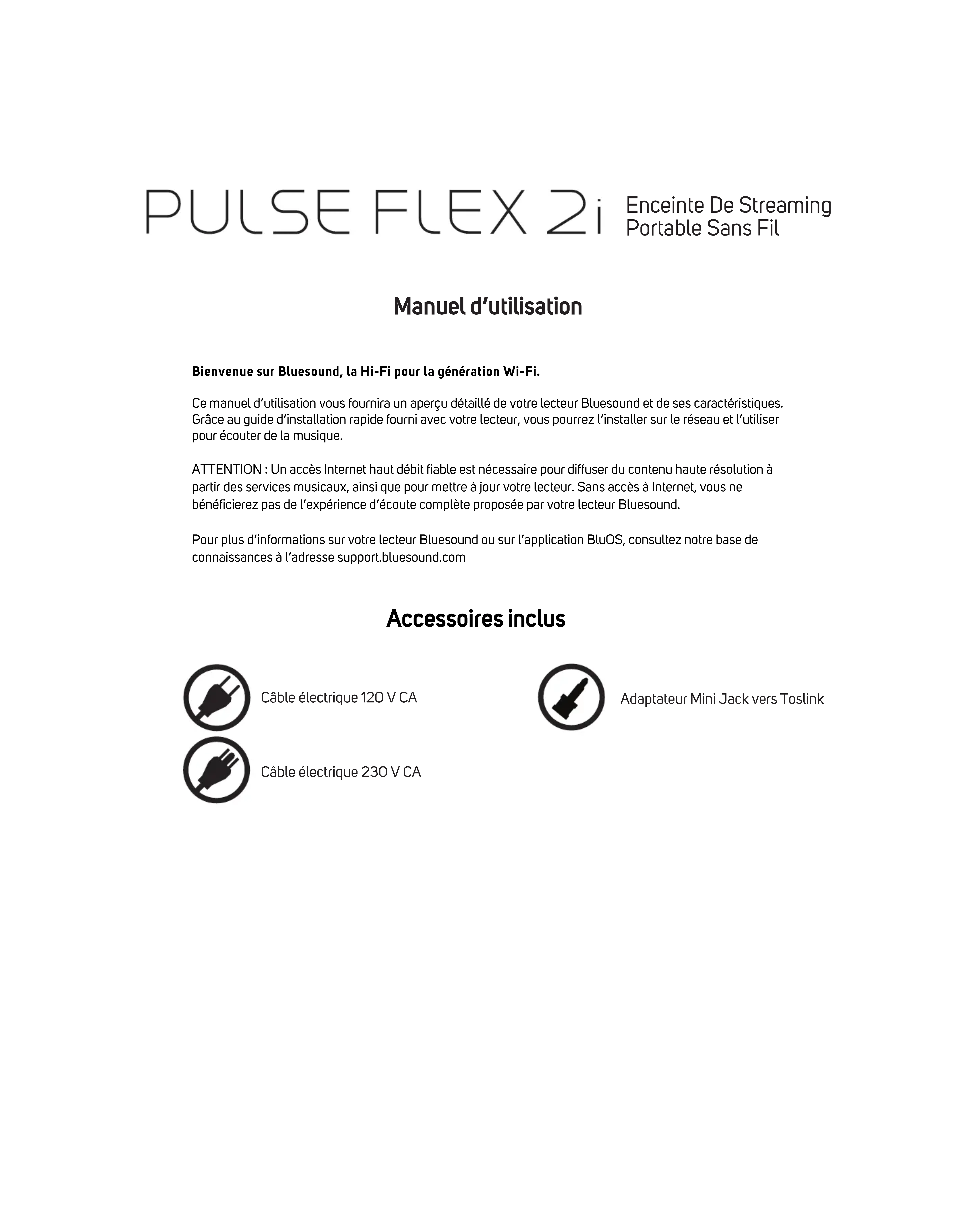MODE D'EMPLOI Pulse Flex 2i Bluesound