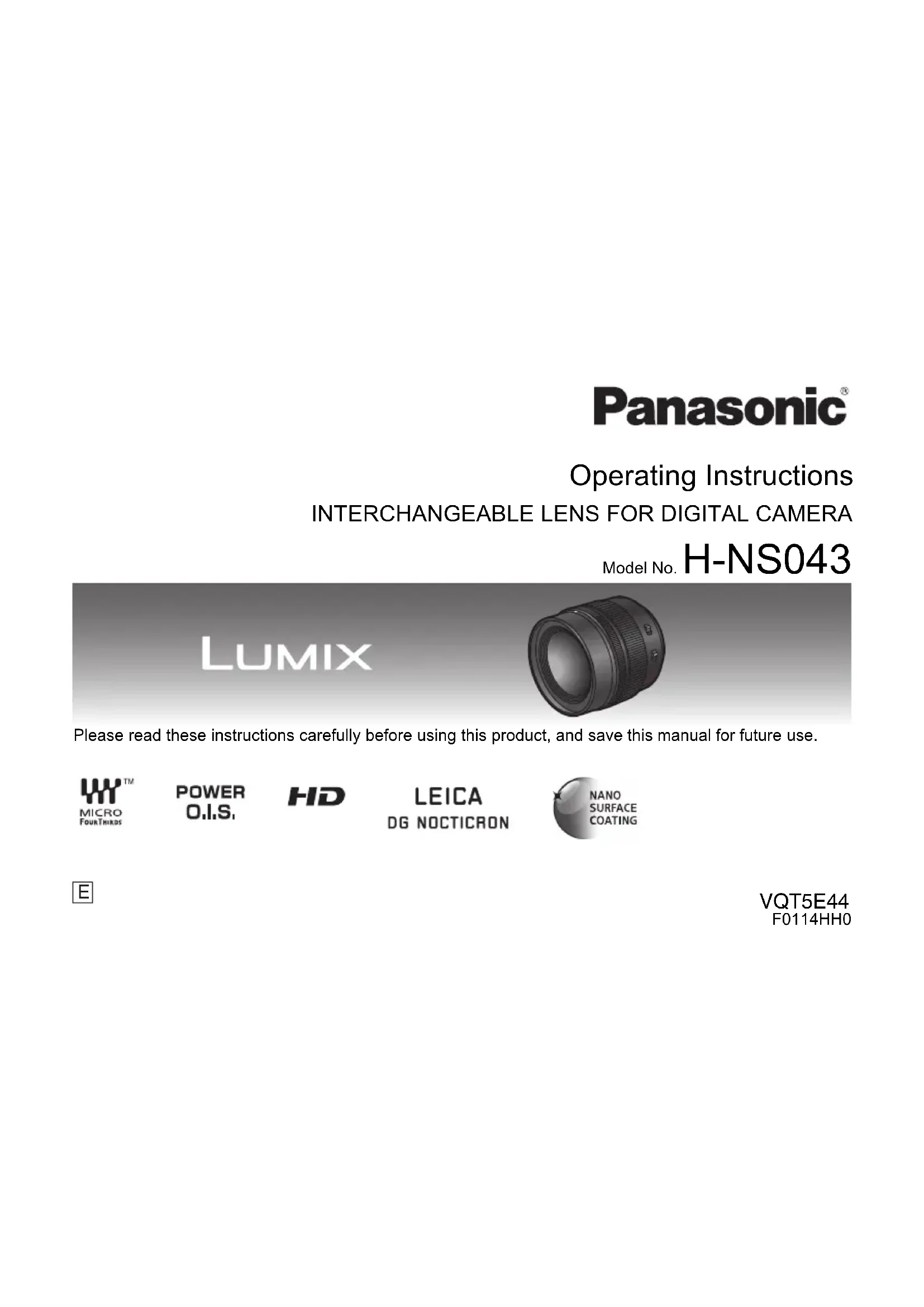 MODE D'EMPLOI Leica DG Nocticron 42.5mm f1.2 ASPH. PANASONIC