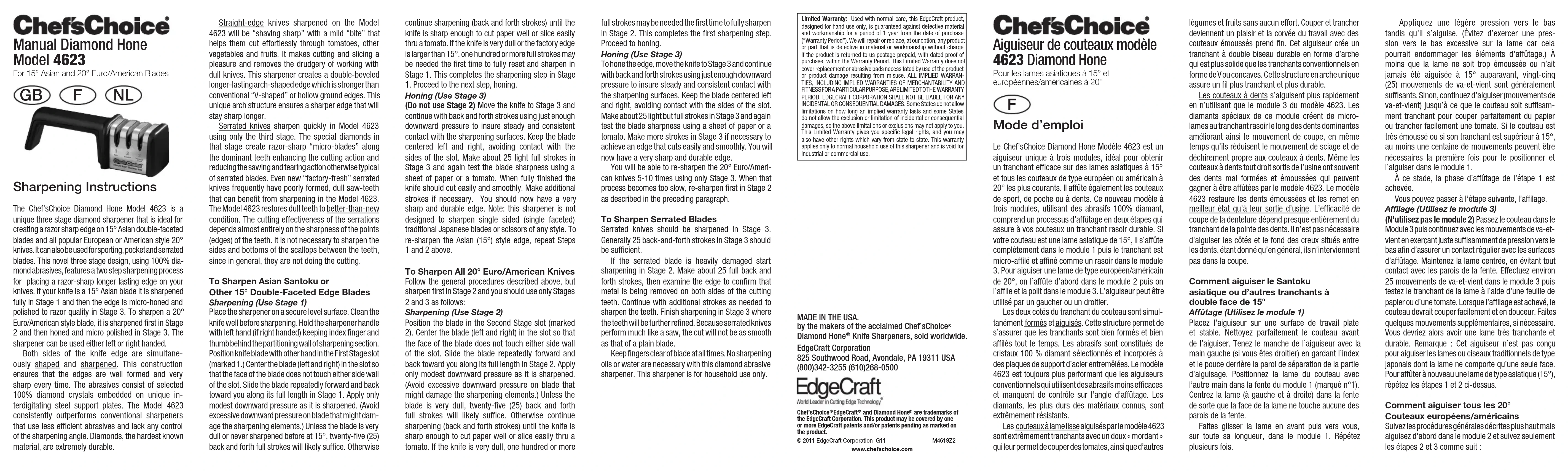 MODE D'EMPLOI Diamond Hone CC4623 Chef's Choice